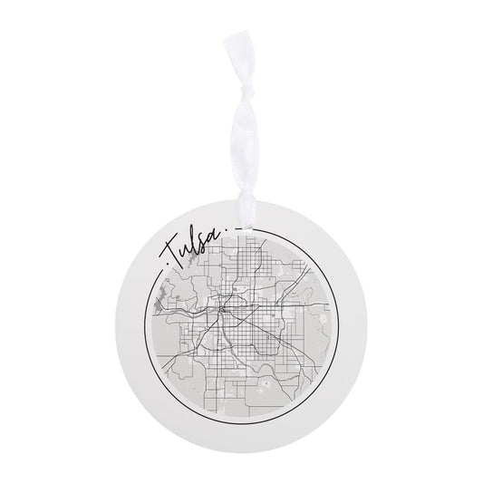 Modern Oklahoma Tulsa Circle Map | Wood Ornament | Eaches | Min 6
