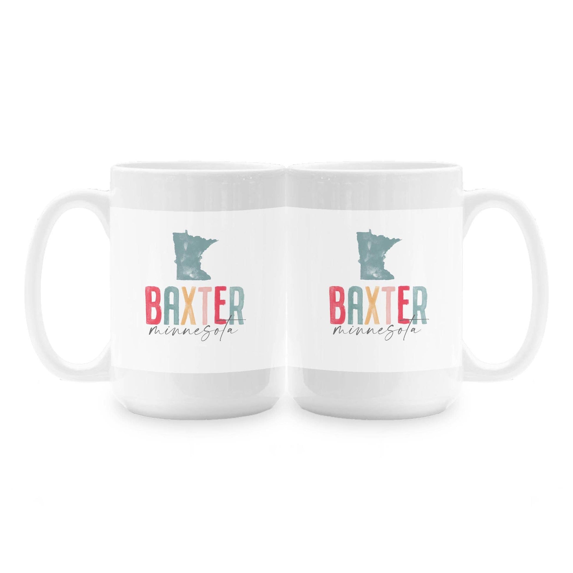 15oz Coffee Mug White-Watercolor City Baxter Minnesota