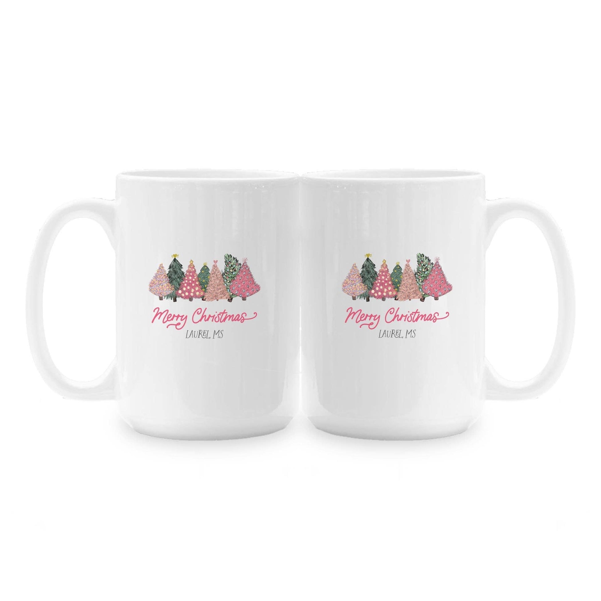 15oz Custom Ceramic Coffee Mug - Pink Christmas Trees