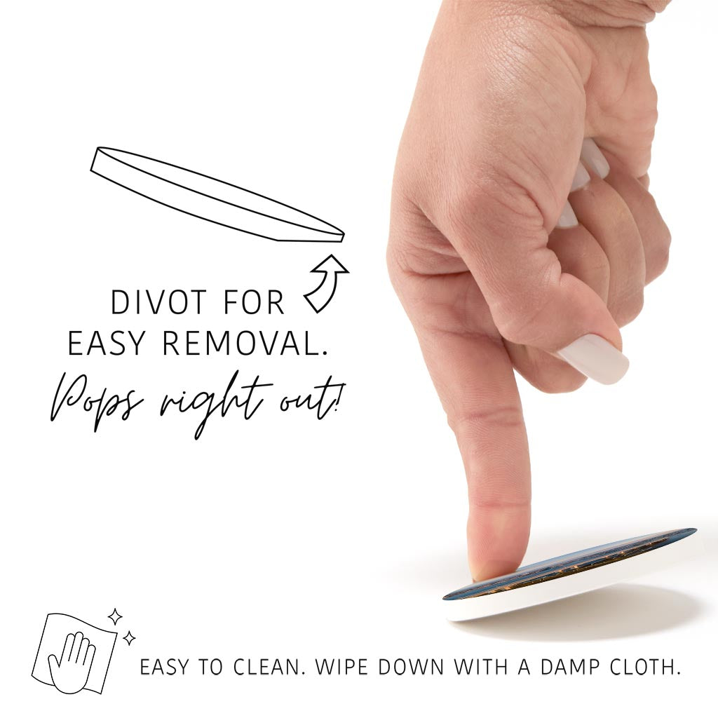 Car coasters are that little accessory that you didn’t know you needed but now consider an essential. Your cupholders are protected and kept clean by absorbing drips from your morning coffee to sticky juice boxes. The strategic divot edge allows you to easily pop it out and wipe clean. No more grime stuck in the cupholder abyss. While car coasters are wonderfully utilitarian, they also inject a little personality and design into the space you spend so much time in. Order a few to mix and match to your mood, season, or newest trends. We love when function and design coincide!