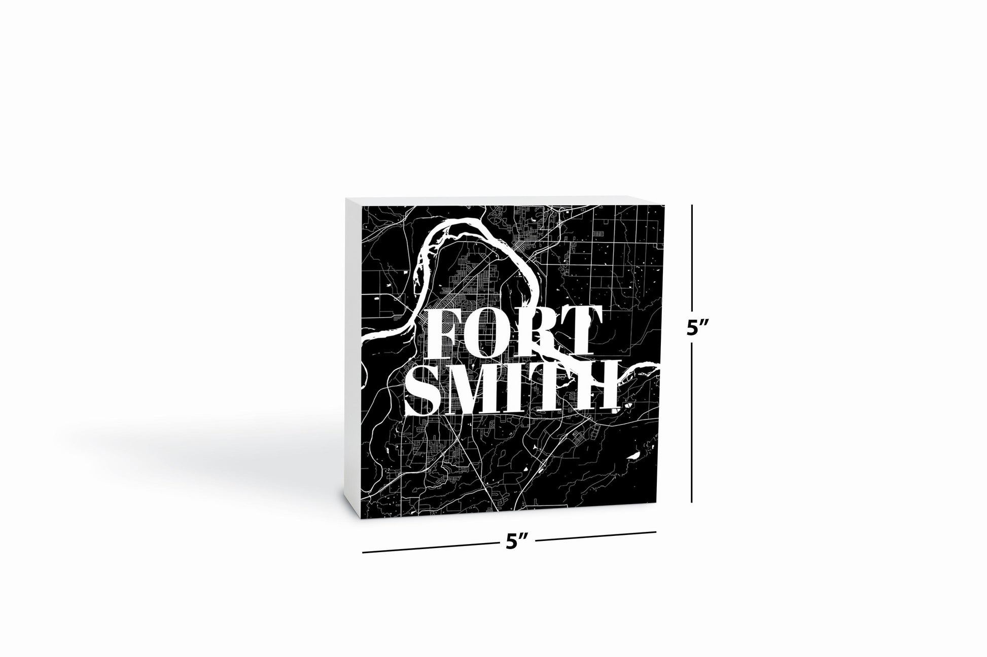 B&W Minimalist Arkansas Fort Smith Map | Wood Block | Eaches | Min 4