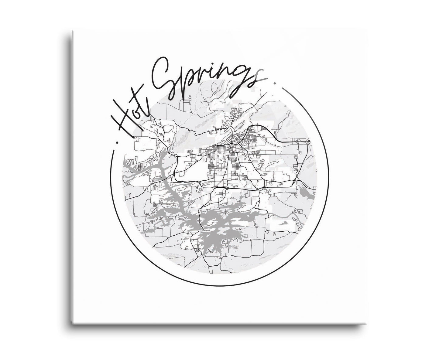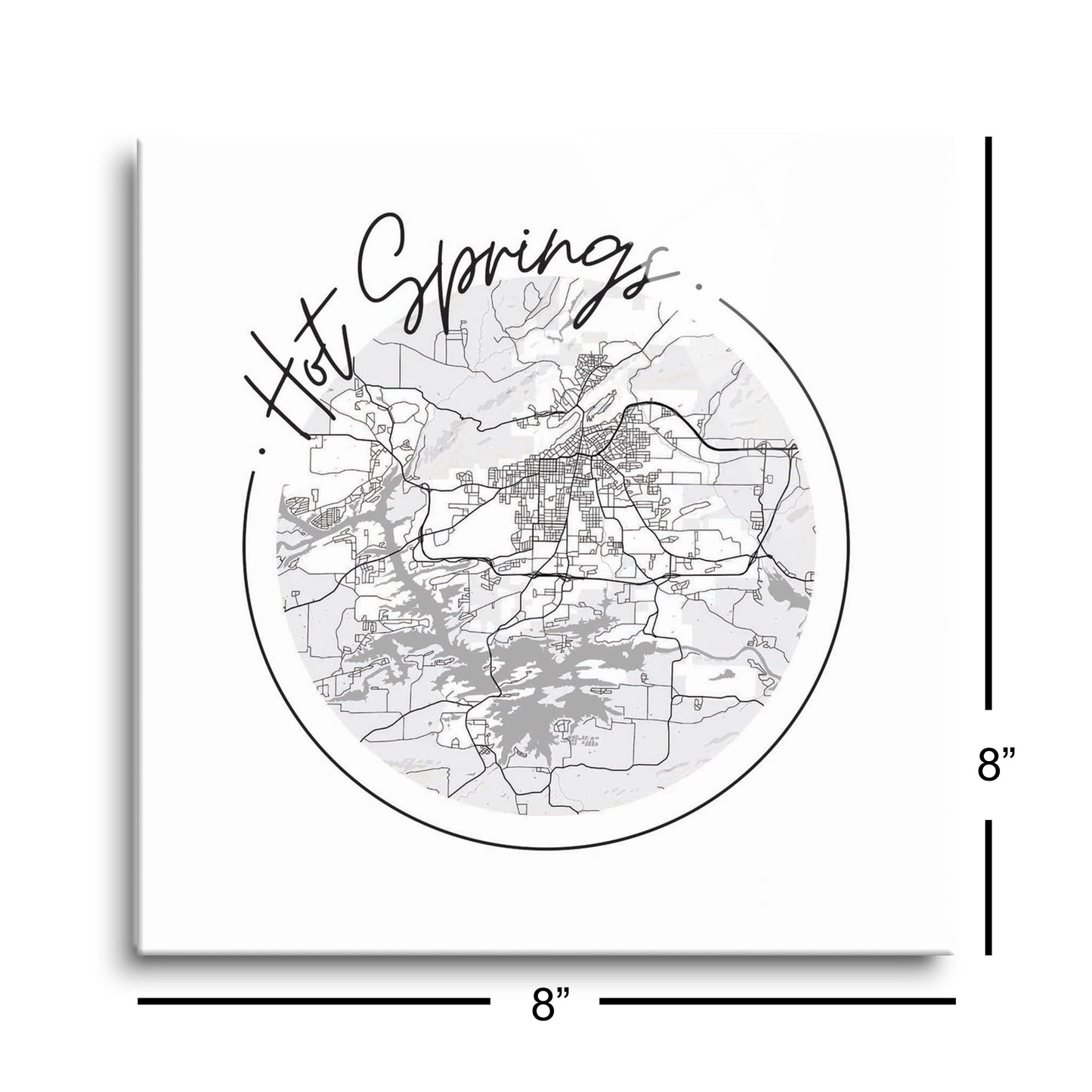 B&W Minimalist Arkansas Hot Springs Circle Map | Hi-Def Glass Art | Eaches | Min 2