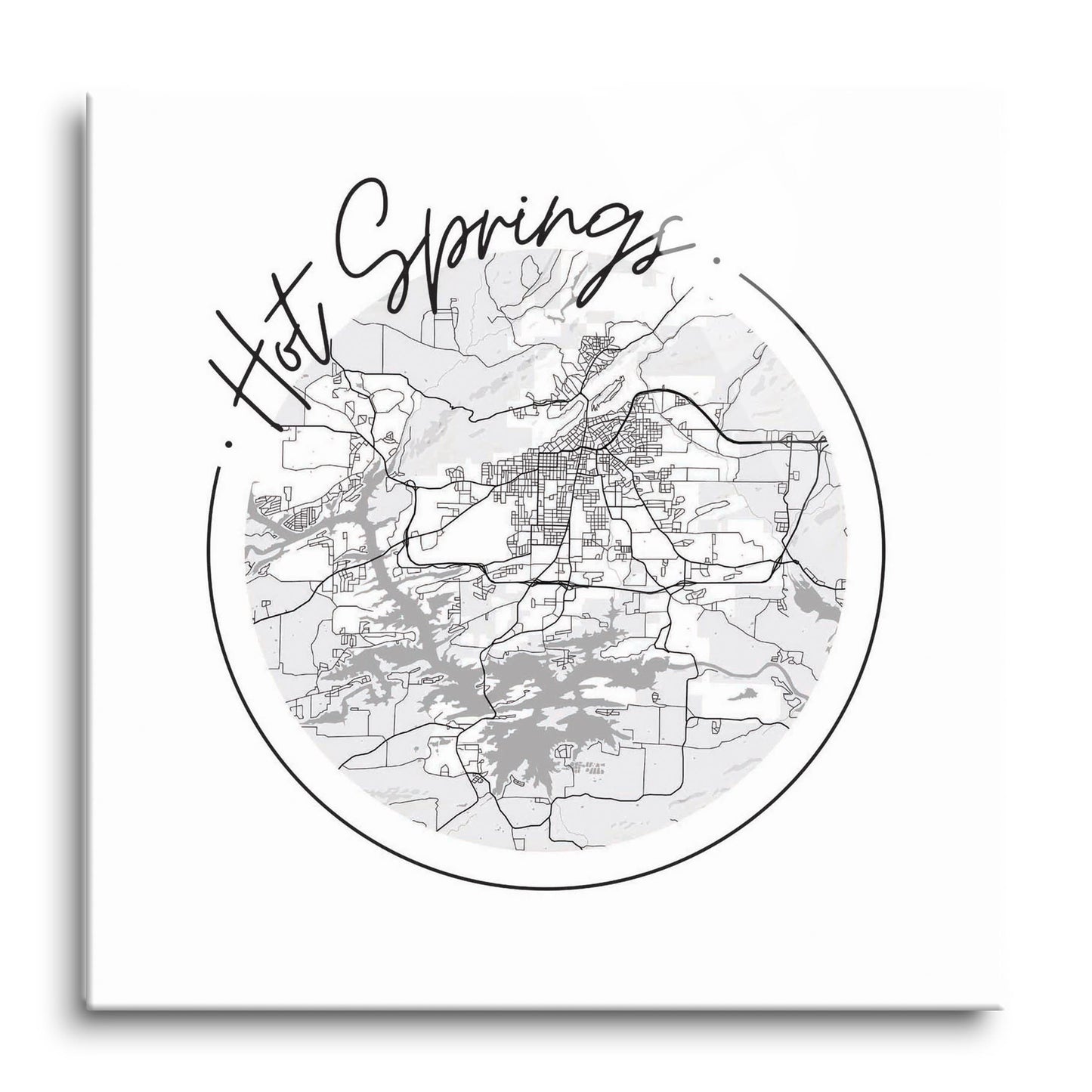 B&W Minimalist Arkansas Hot Springs Circle Map | Hi-Def Glass Art | Eaches | Min 1
