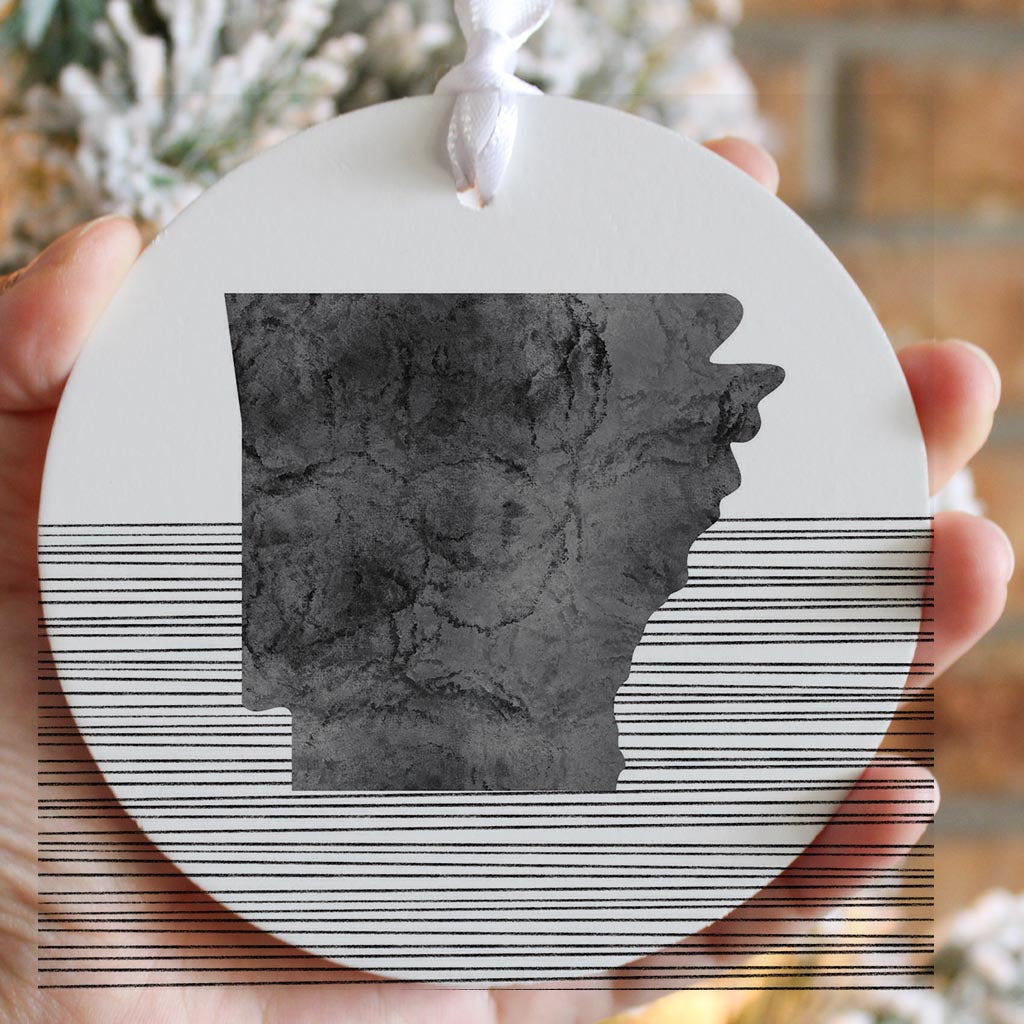 B&W Minimalist Arkansas Lines | Wood Ornament | Eaches | Min 6