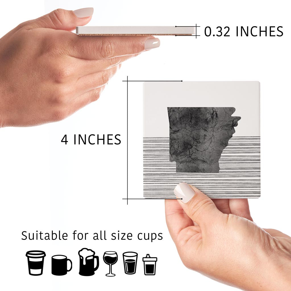 B&W Minimalist Arkansas Lines | Absorbent Coasters | Set of 4 | Min 2