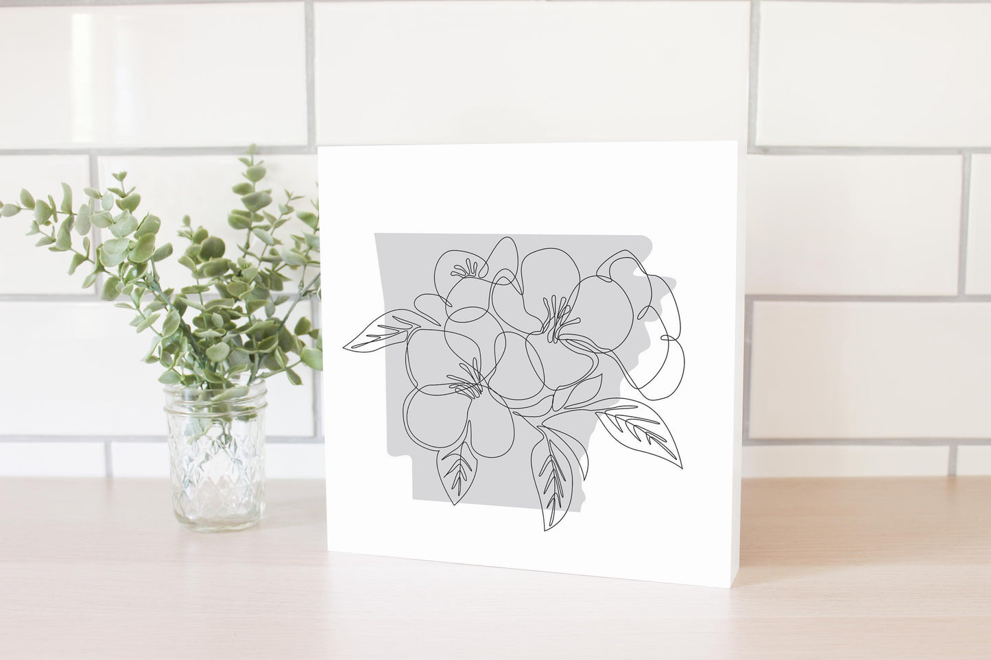B&W Minimalist Arkansas Single Line Apple Blossoms | Wood Block | Eaches | Min 2
