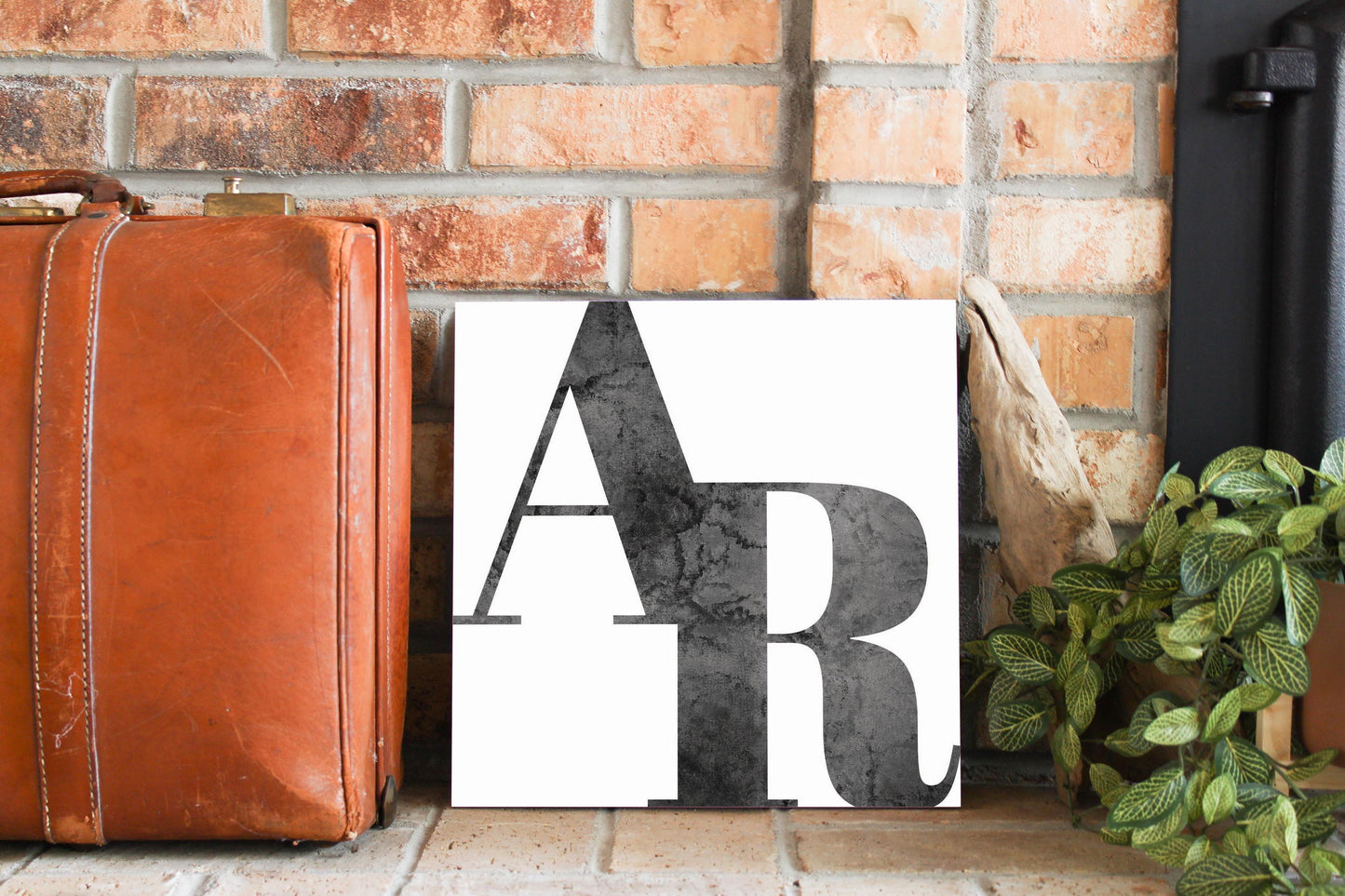 B&W Minimalist Arkansas White Initials | Wood Sign | Eaches | Min 2