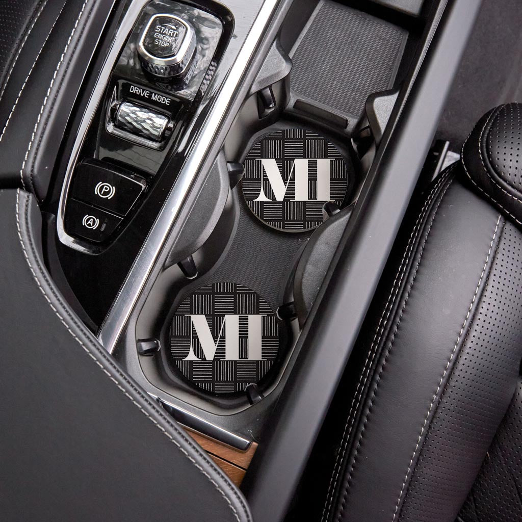 Black And White Abbreviated On Black Michigan| Absorbent Car Coasters | Set of 2 | Min 4