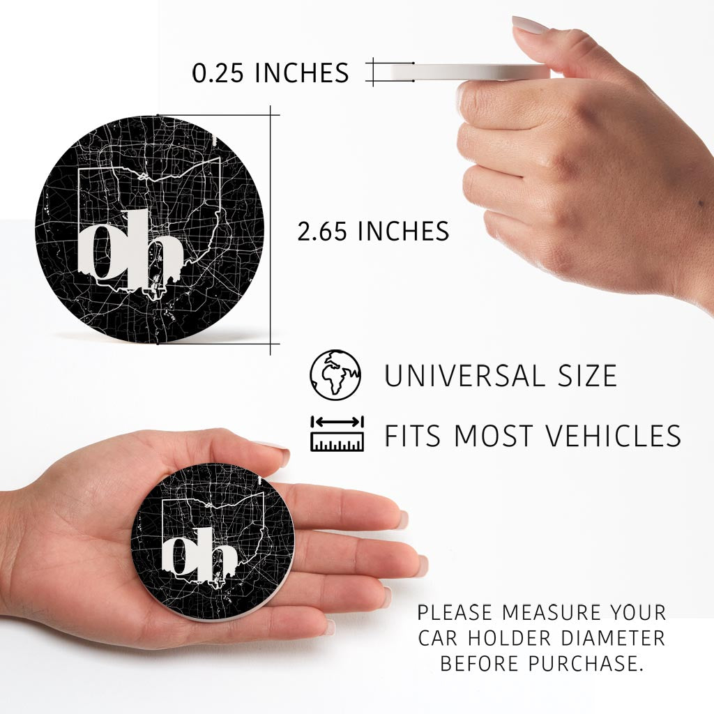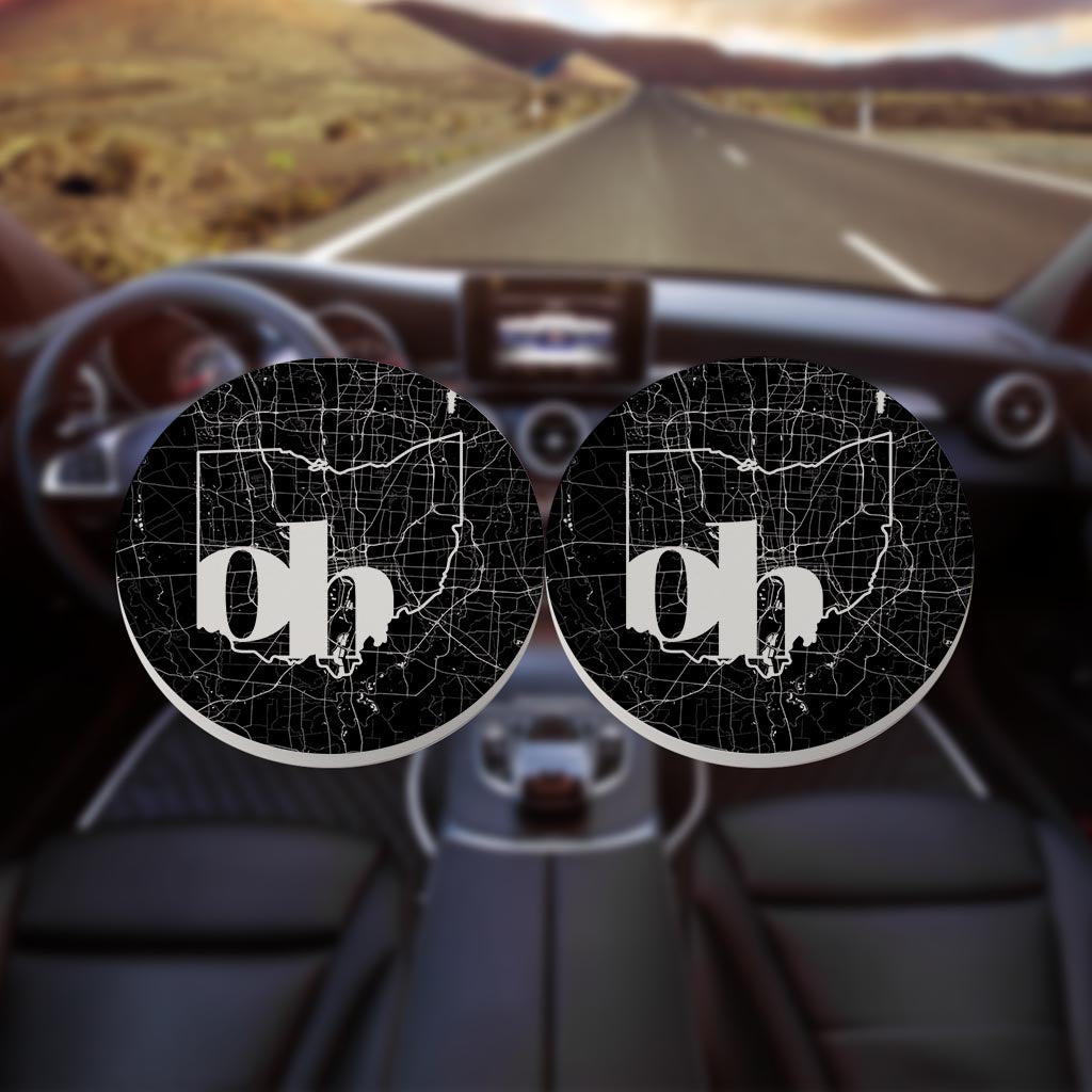 Black And White Abbreviated State Map Black Ohio Columbus | Absorbent Car Coasters | Set of 2 | Min 4