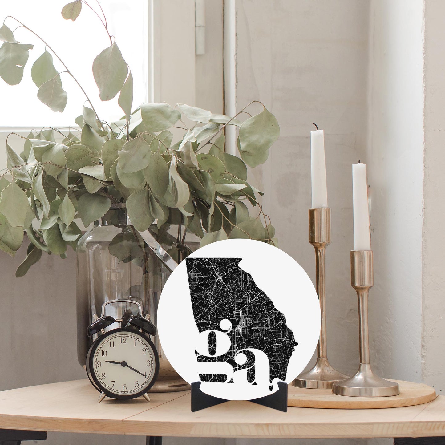 Black And White Abbreviated State Map White Georgia | Wood Sign | Eaches | Min 1
