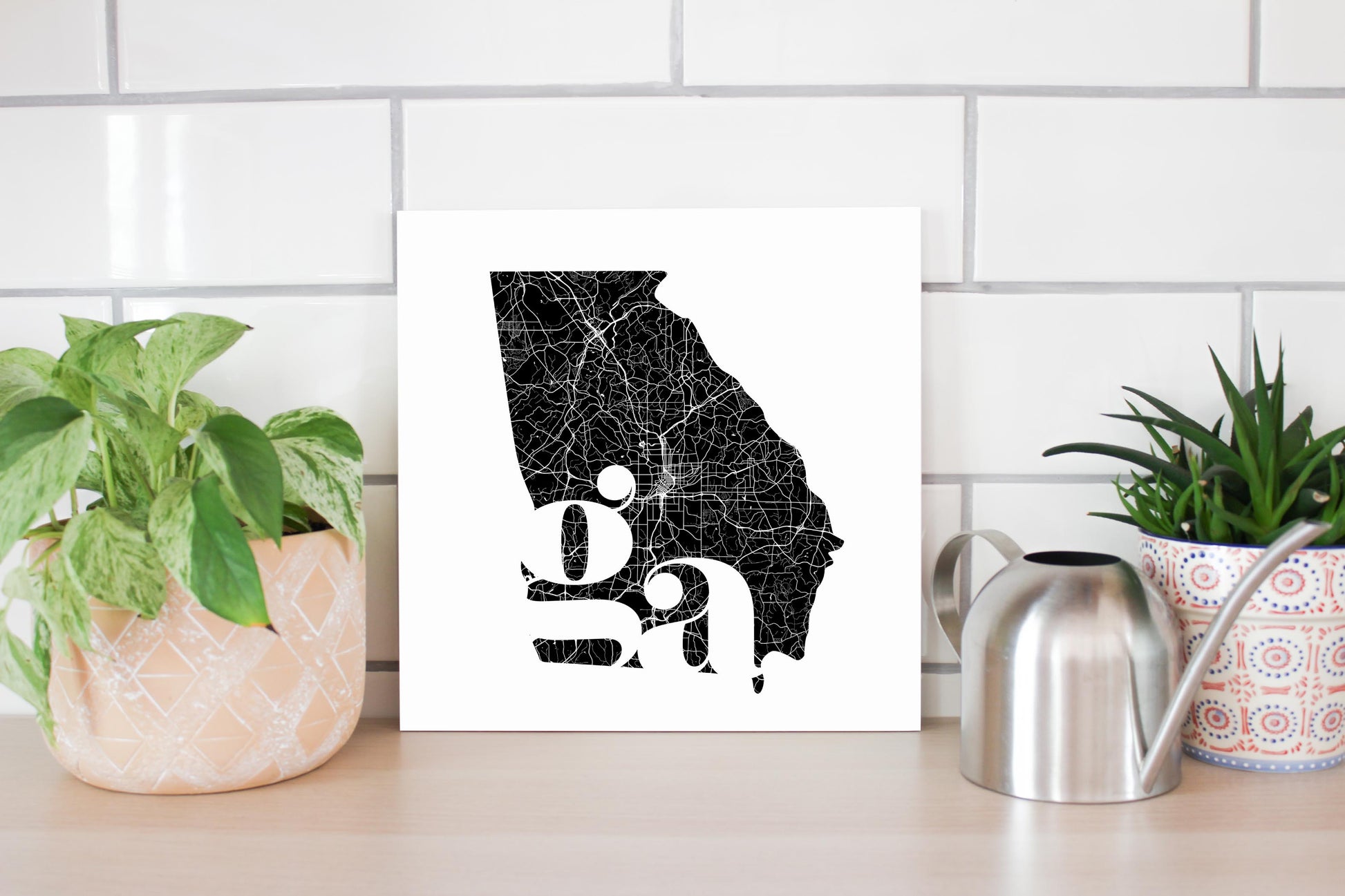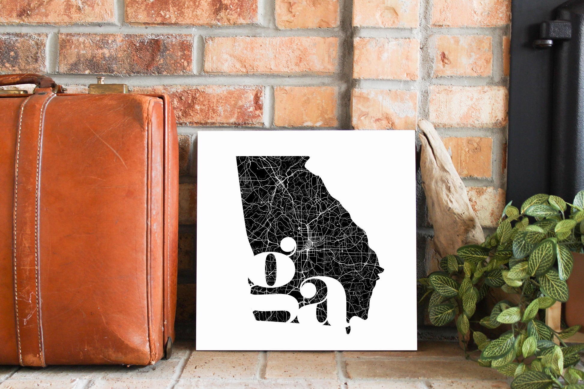 Black And White Abbreviated State Map White Georgia | Wood Sign | Eaches | Min 2
