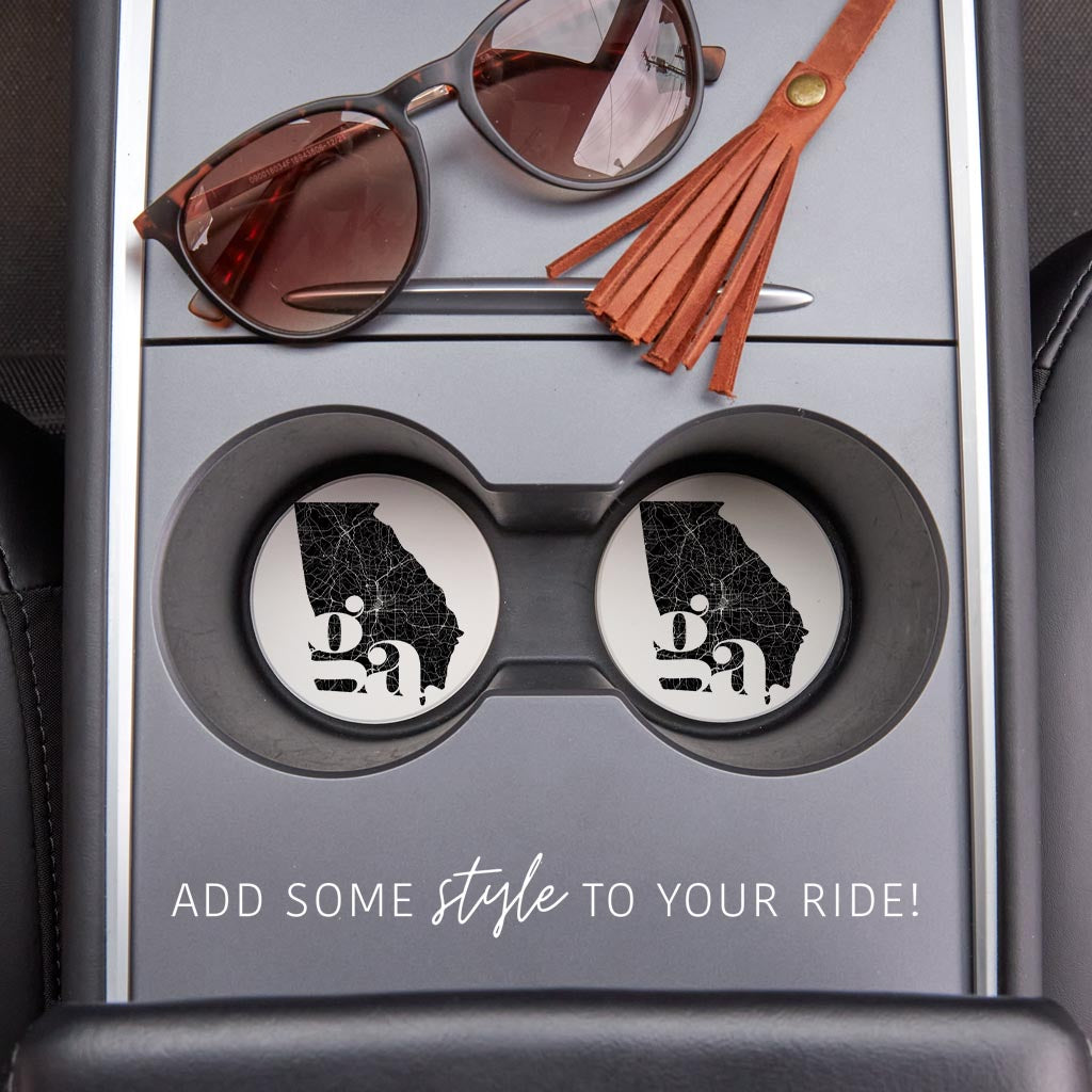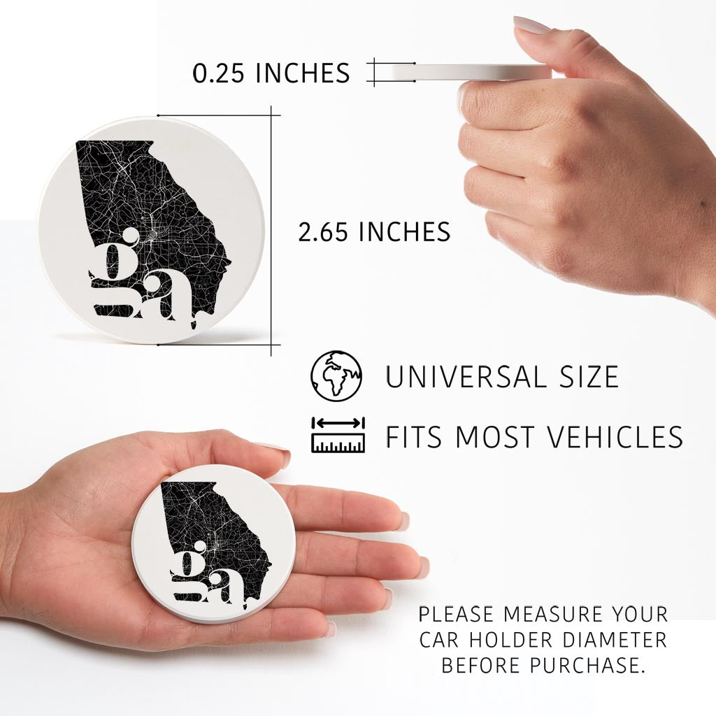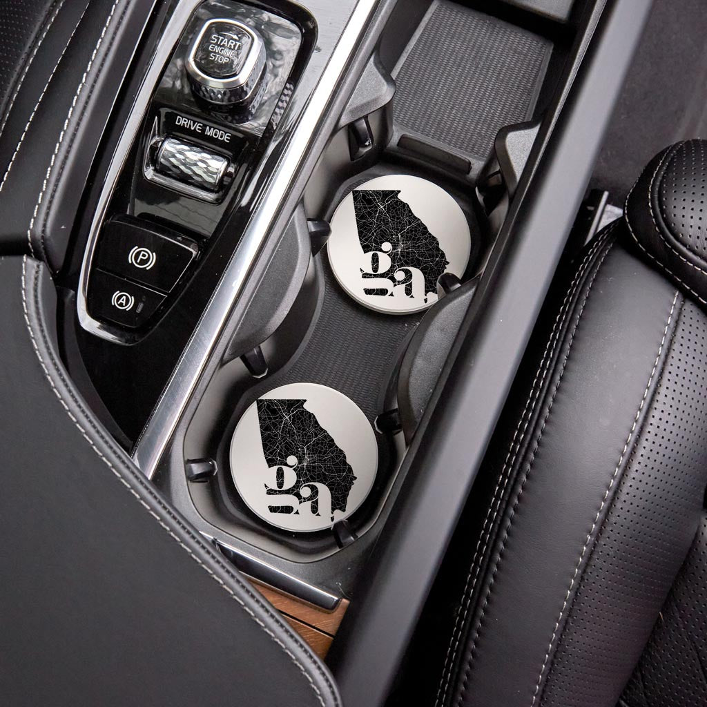 Black And White Abbreviated State Map White Georgia | Absorbent Car Coasters | Set of 2 | Min 4