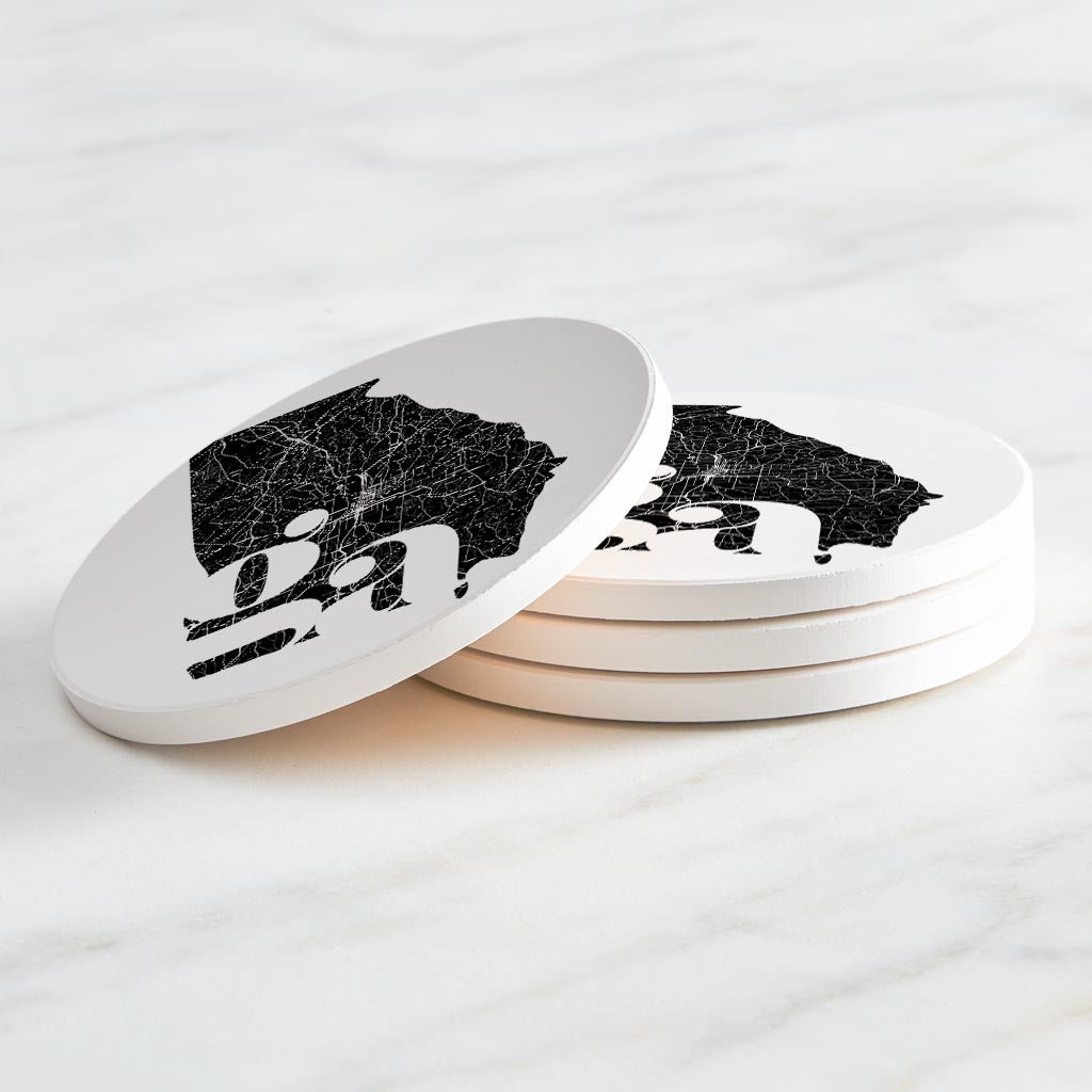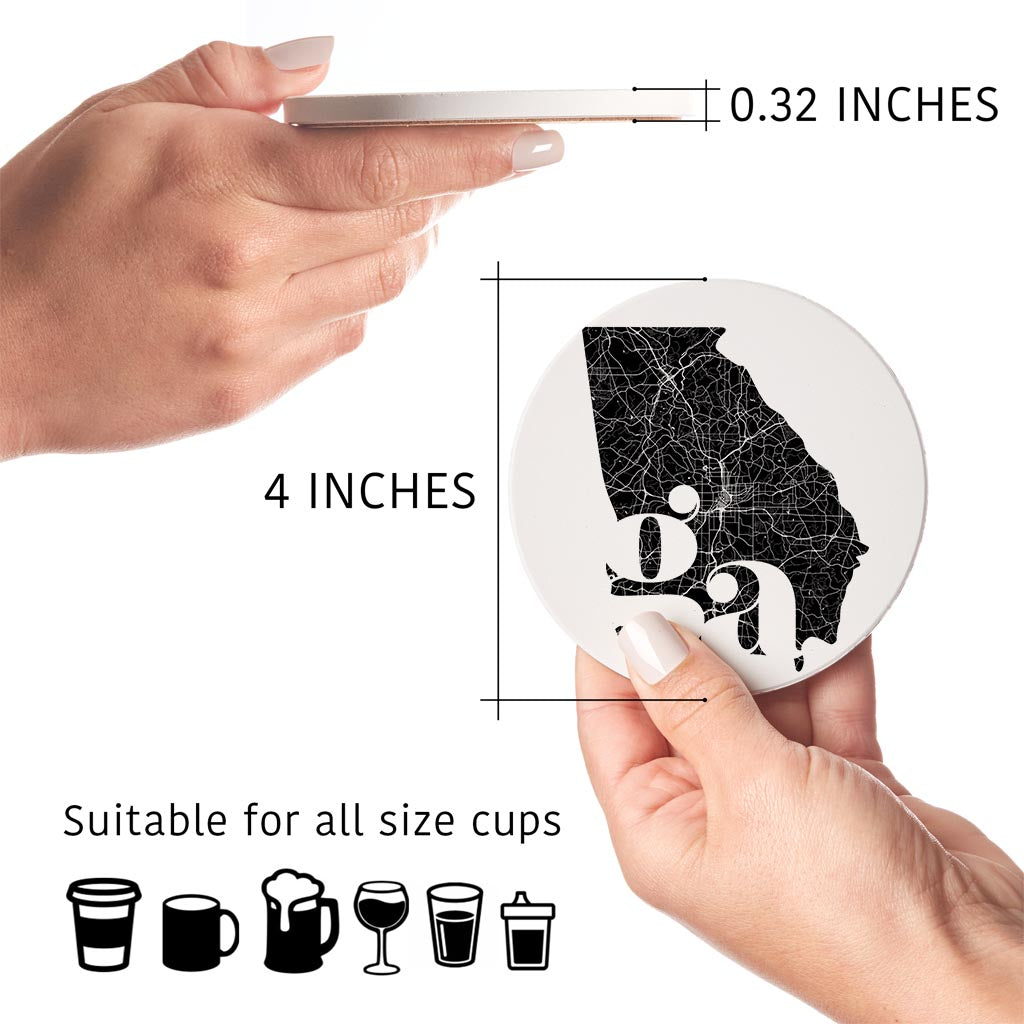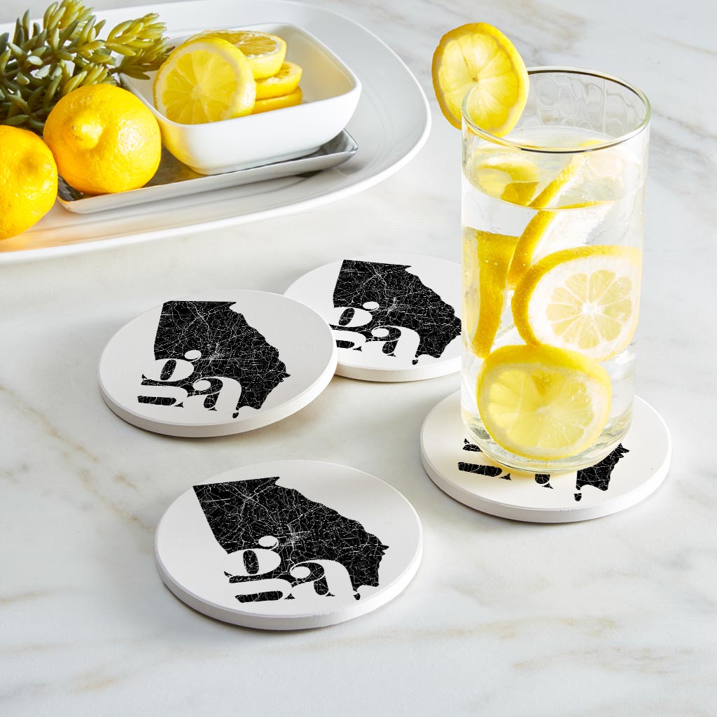 Black And White Abbreviated State Map White Georgia | Absorbent Coasters | Set of 4 | Min 2