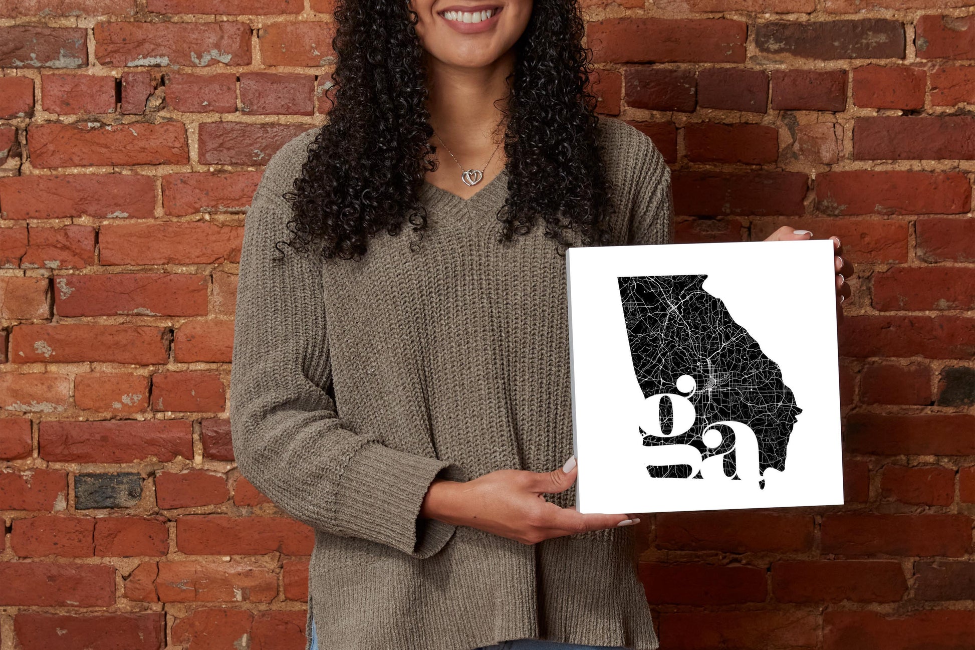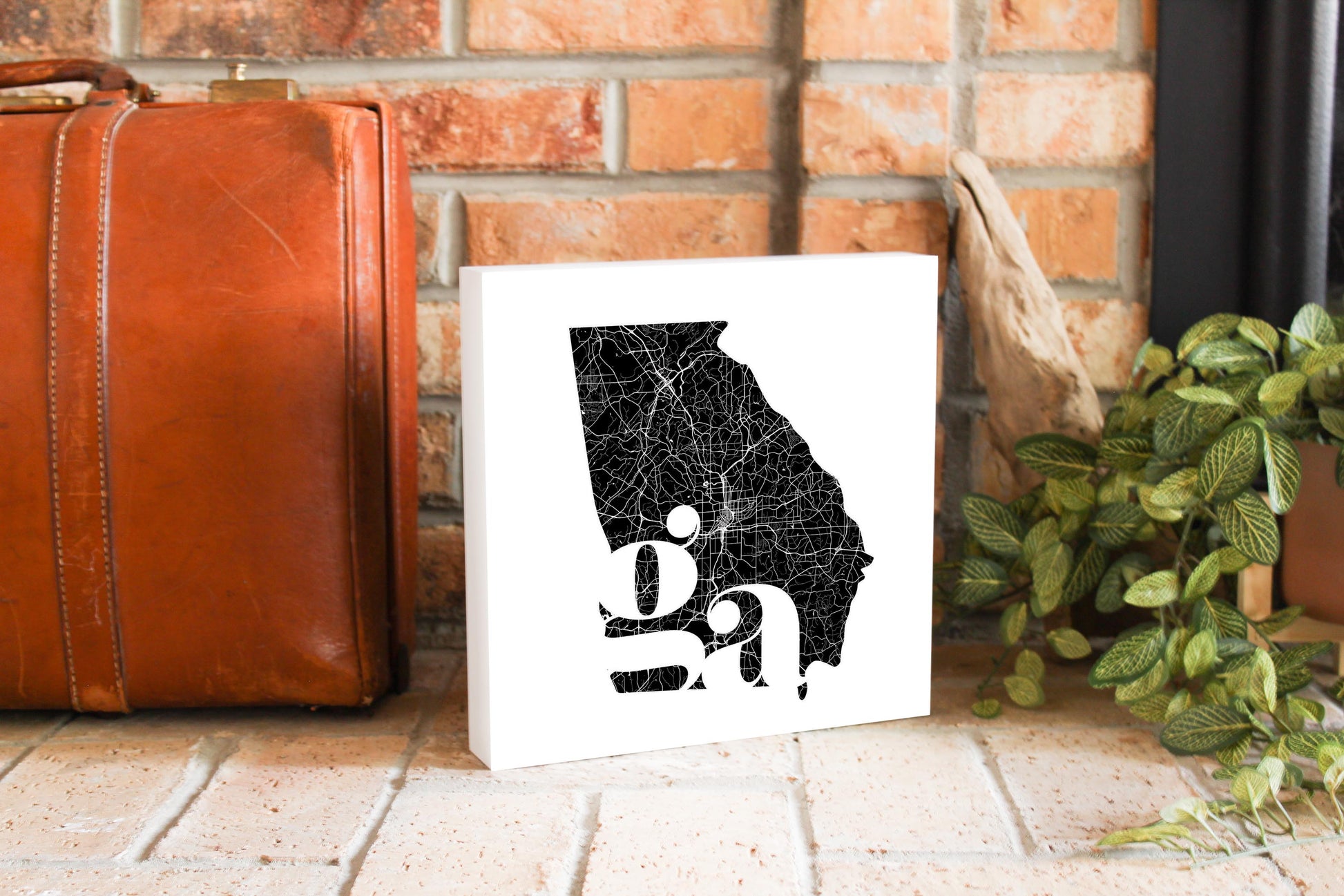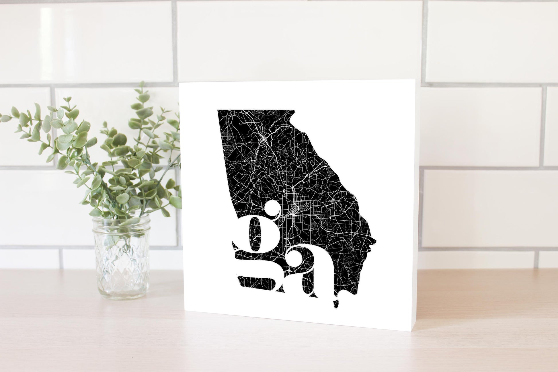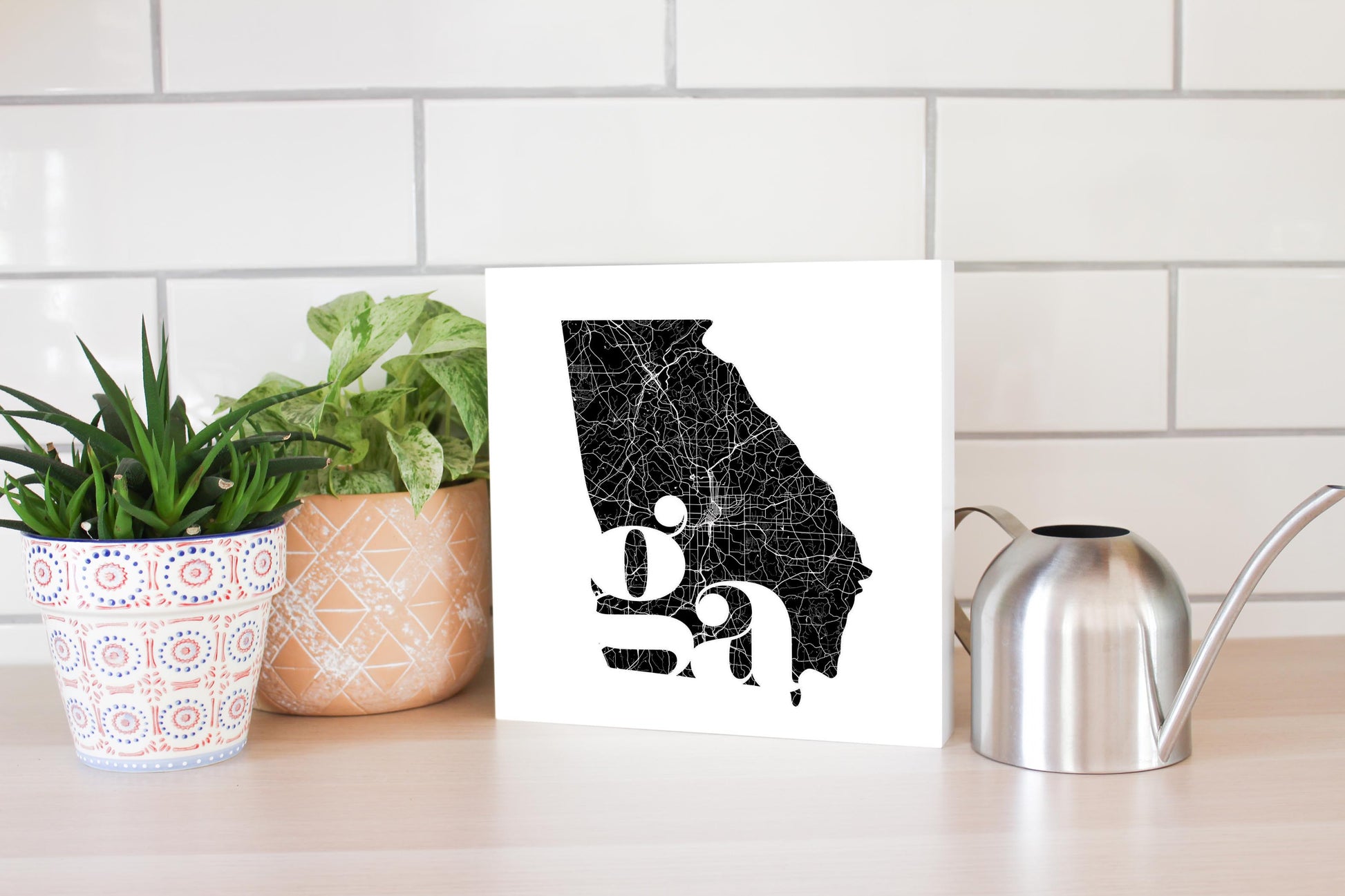 Black And White Abbreviated State Map White Georgia | Wood Block | Eaches | Min 2
