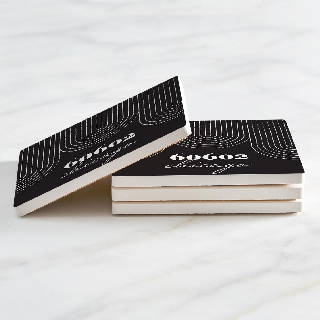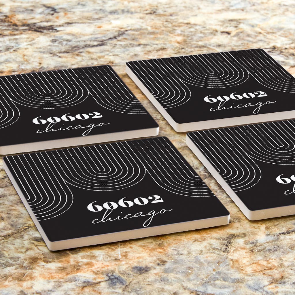 Black And White City Zip On Black Illinois Chicago | Absorbent Coasters | Set of 4 | Min 2