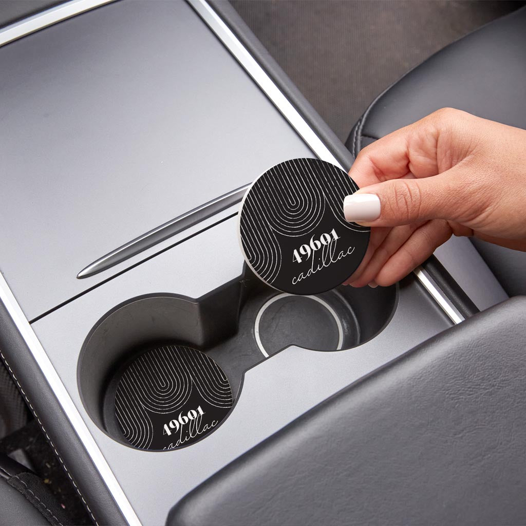 Black And White City Zip On Black Michigan Cadillac | Absorbent Car Coasters | Set of 2 | Min 4