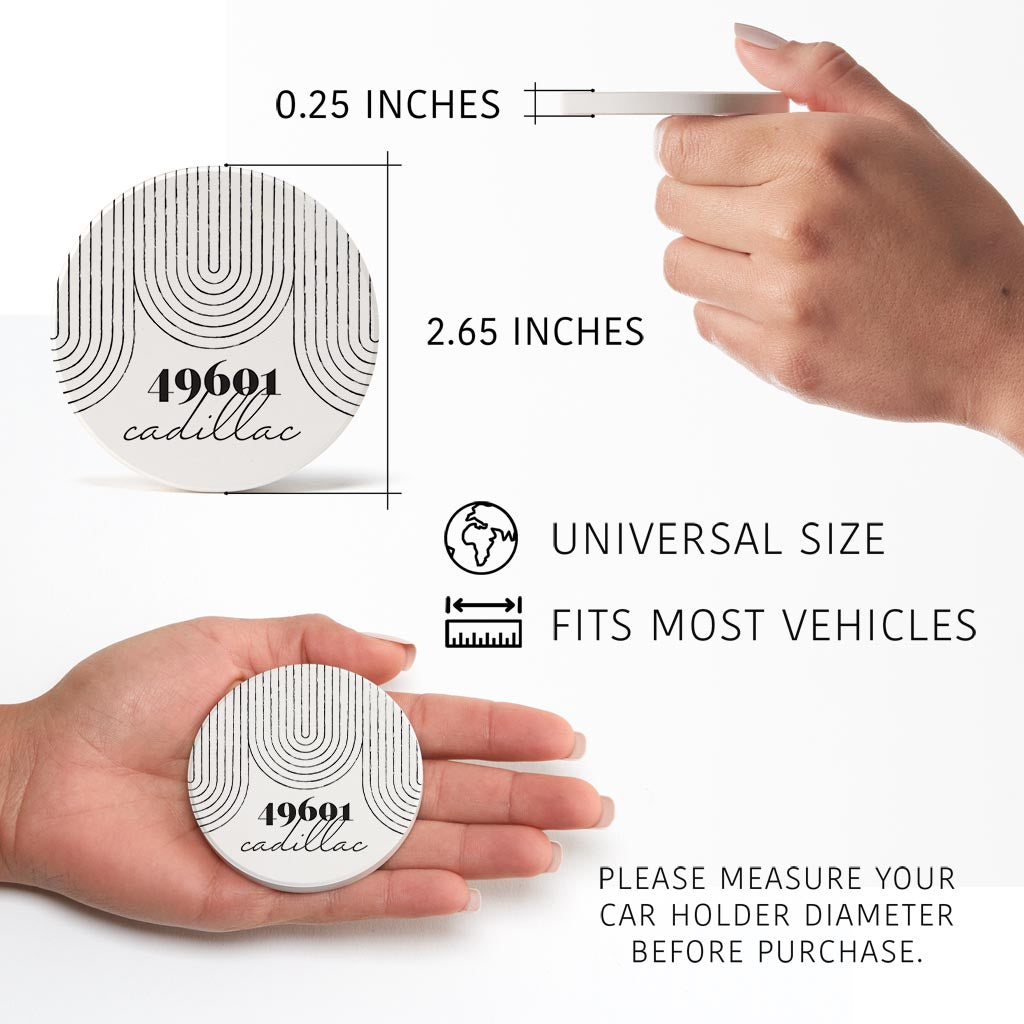 Black And White City Zip On White Michigan Cadillac | Absorbent Car Coasters | Set of 2 | Min 4