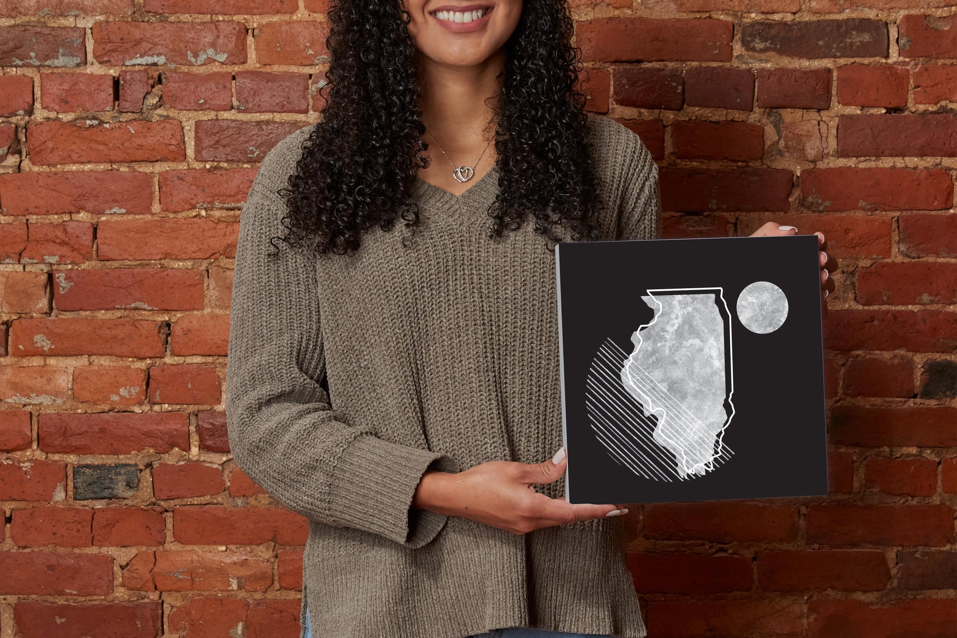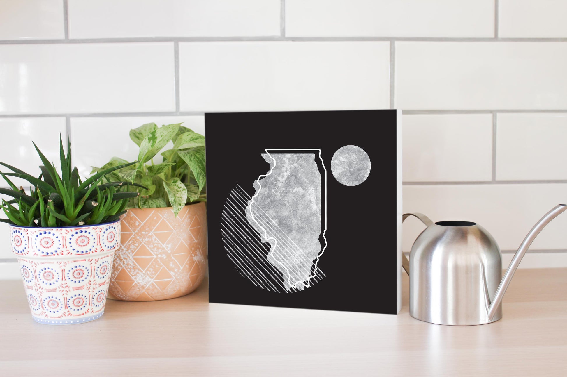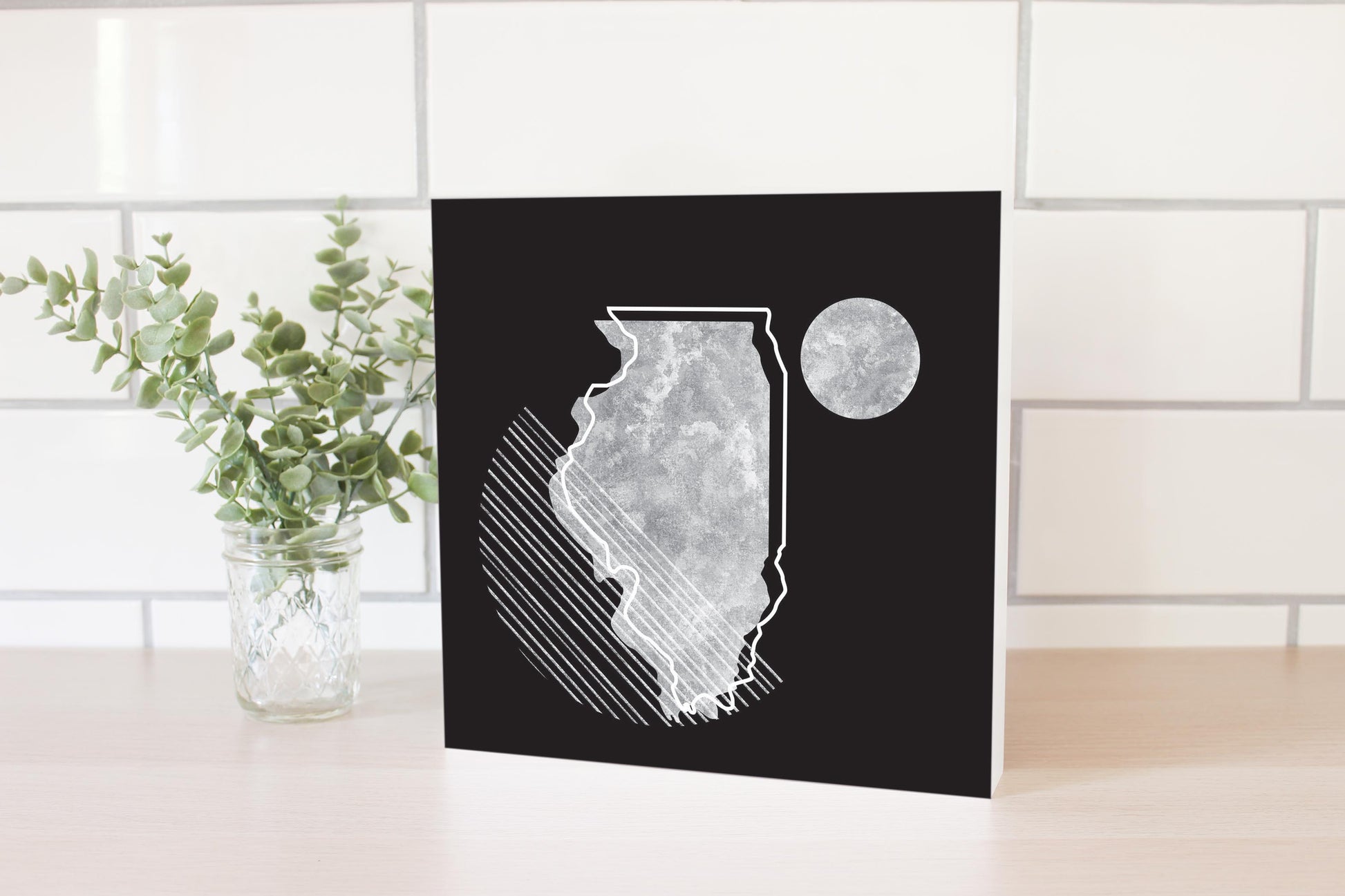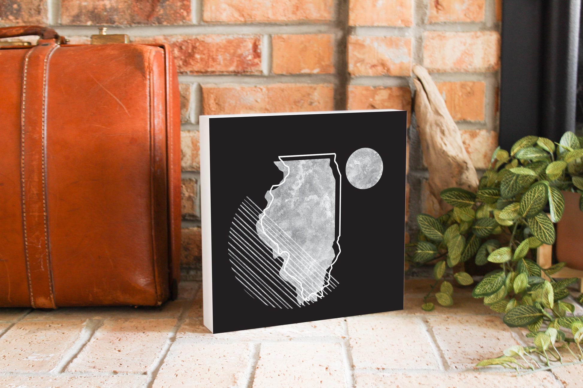 Black And White Geometric On Black Illinois | Wood Block | Eaches | Min 2