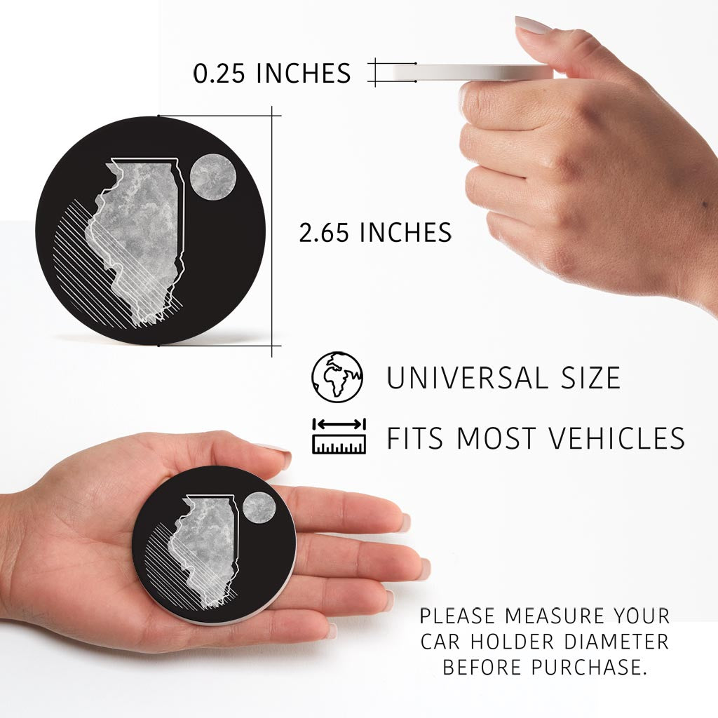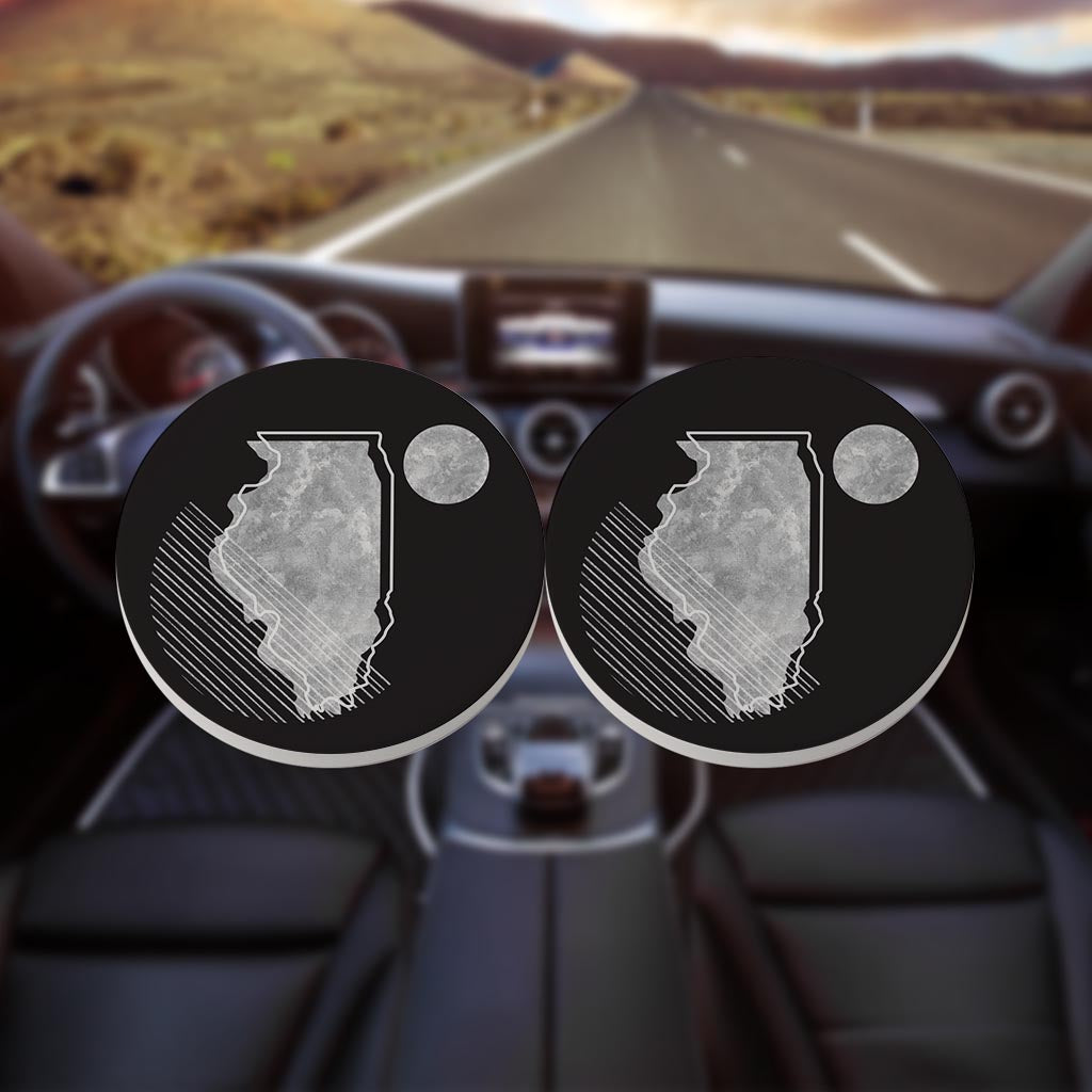 Black And White Geometric On Black Illinois | Absorbent Car Coasters | Set of 2 | Min 4