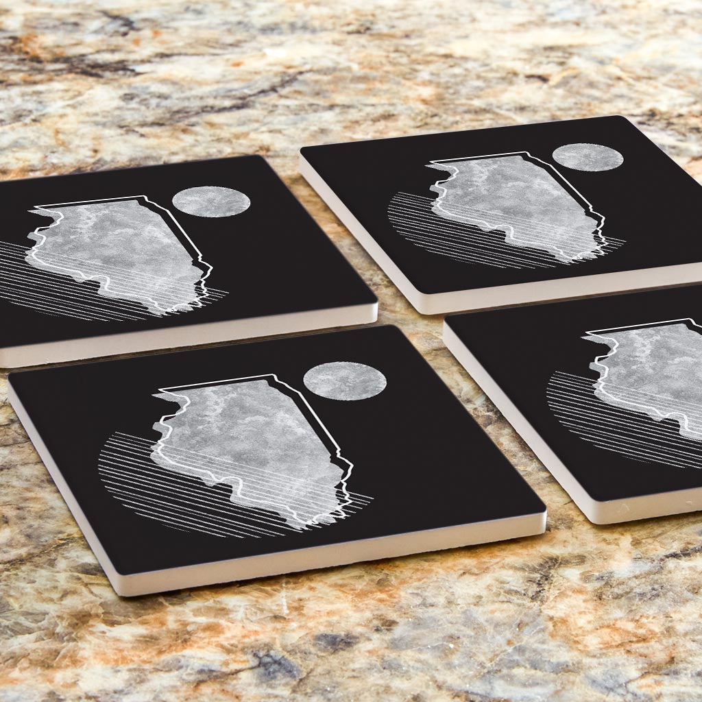 Black And White Geometric On Black Illinois | Absorbent Coasters | Set of 4 | Min 2