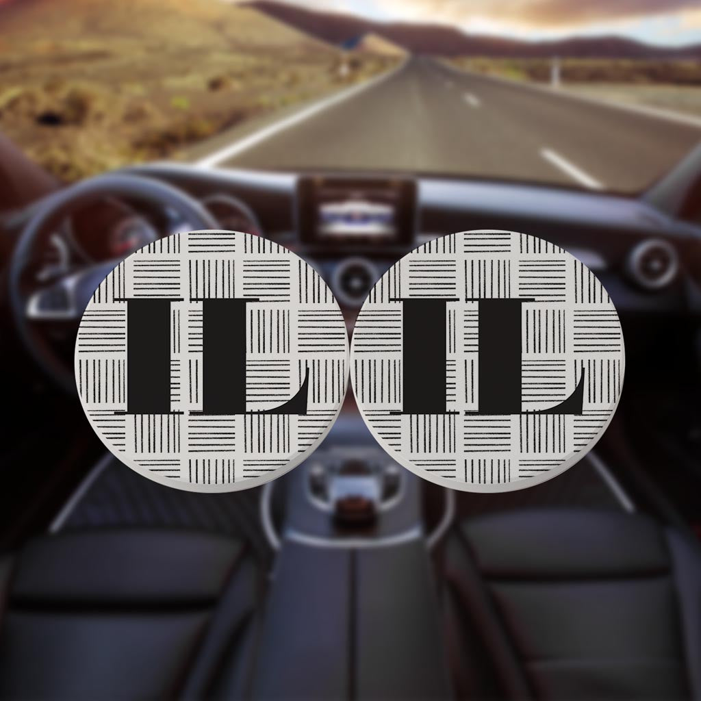 Black And White Geometric On White Illinois| Absorbent Car Coasters | Set of 2 | Min 4