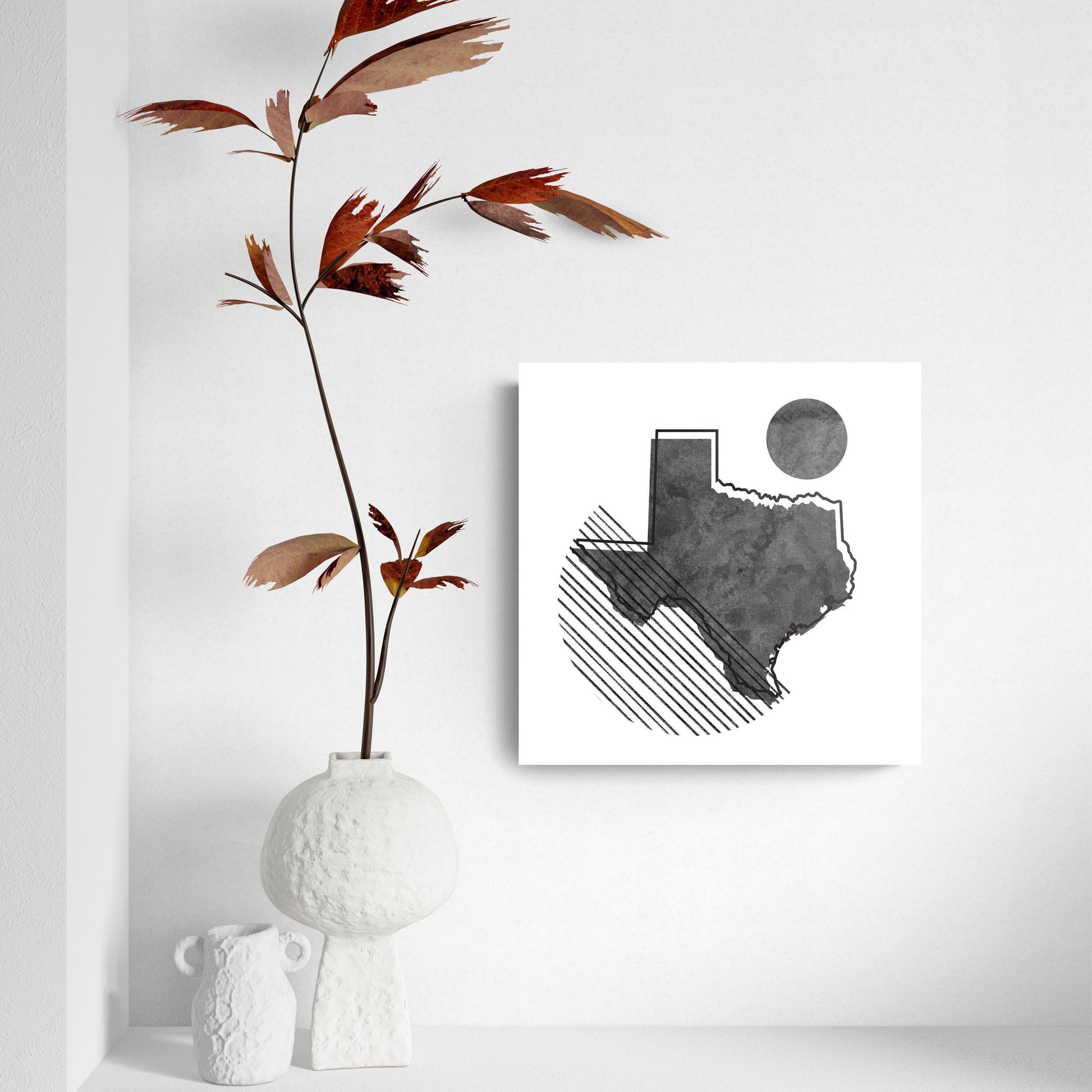 Black And White Geometric On White Texas | Hi-Def Glass Art | Eaches | Min 2