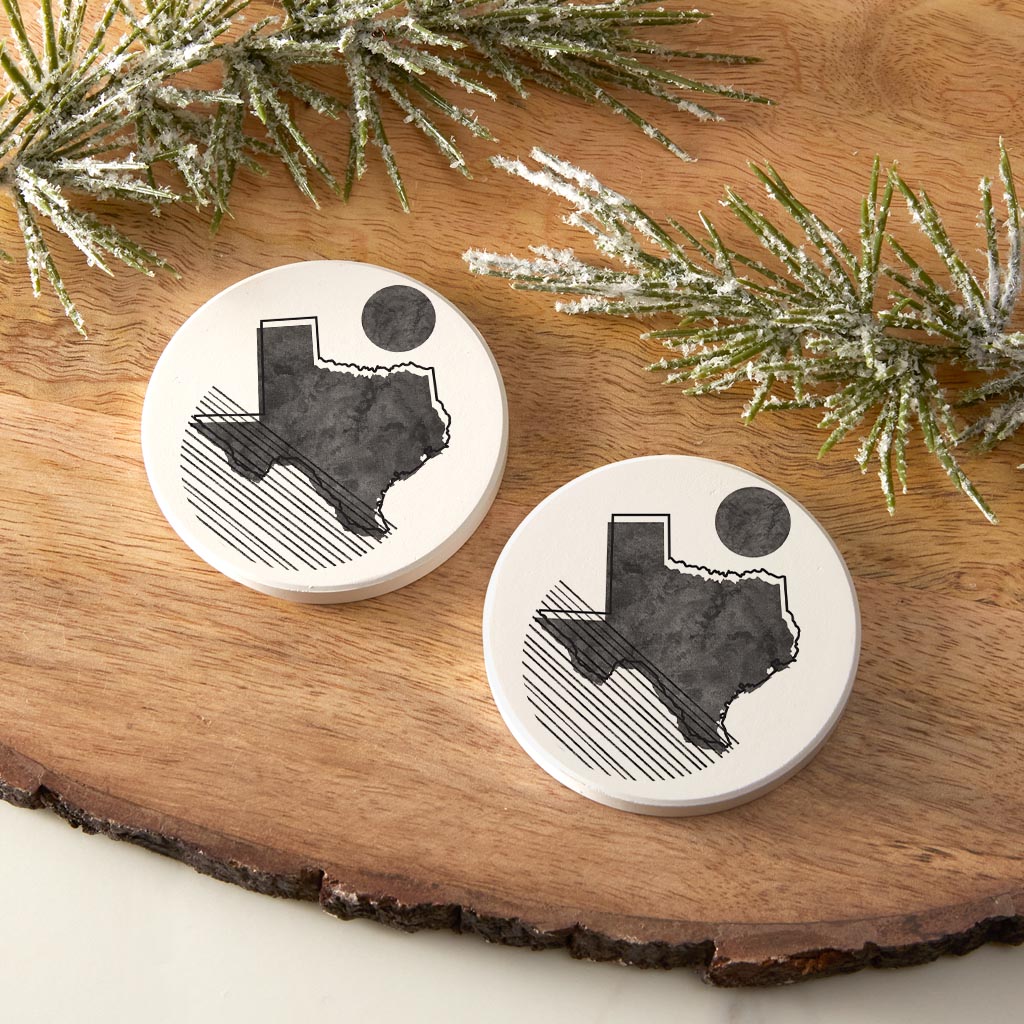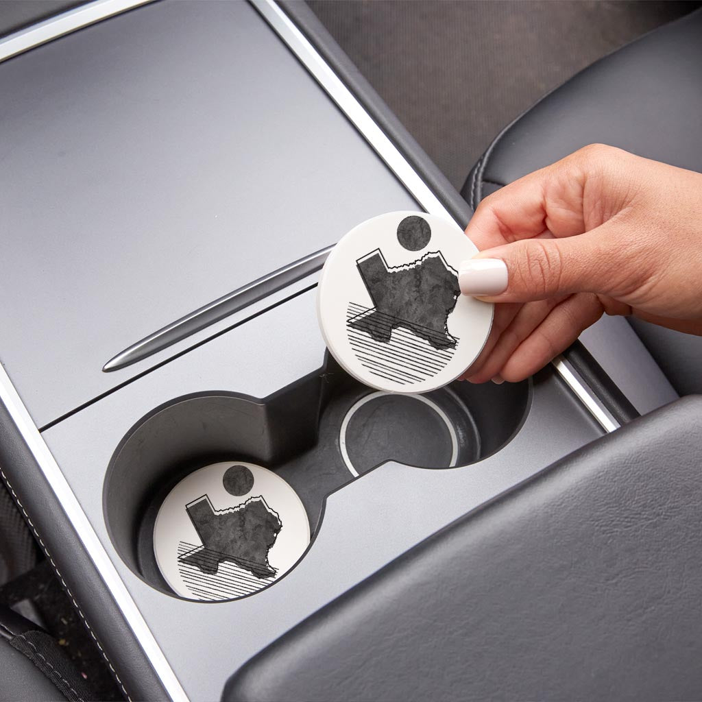 Black And White Geometric On White Texas | Absorbent Car Coasters | Set of 2 | Min 4