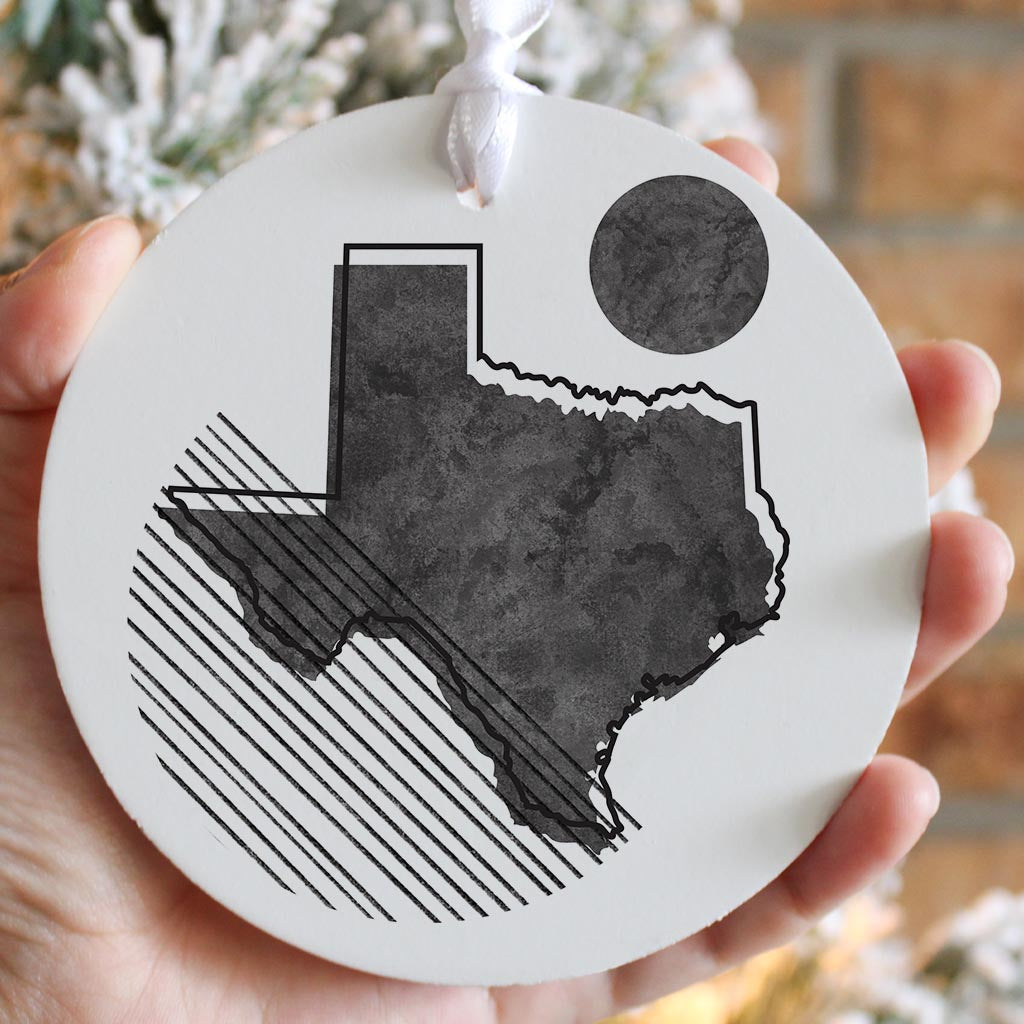 Black And White Geometric On White Texas | Wood Ornament | Eaches | Min 6