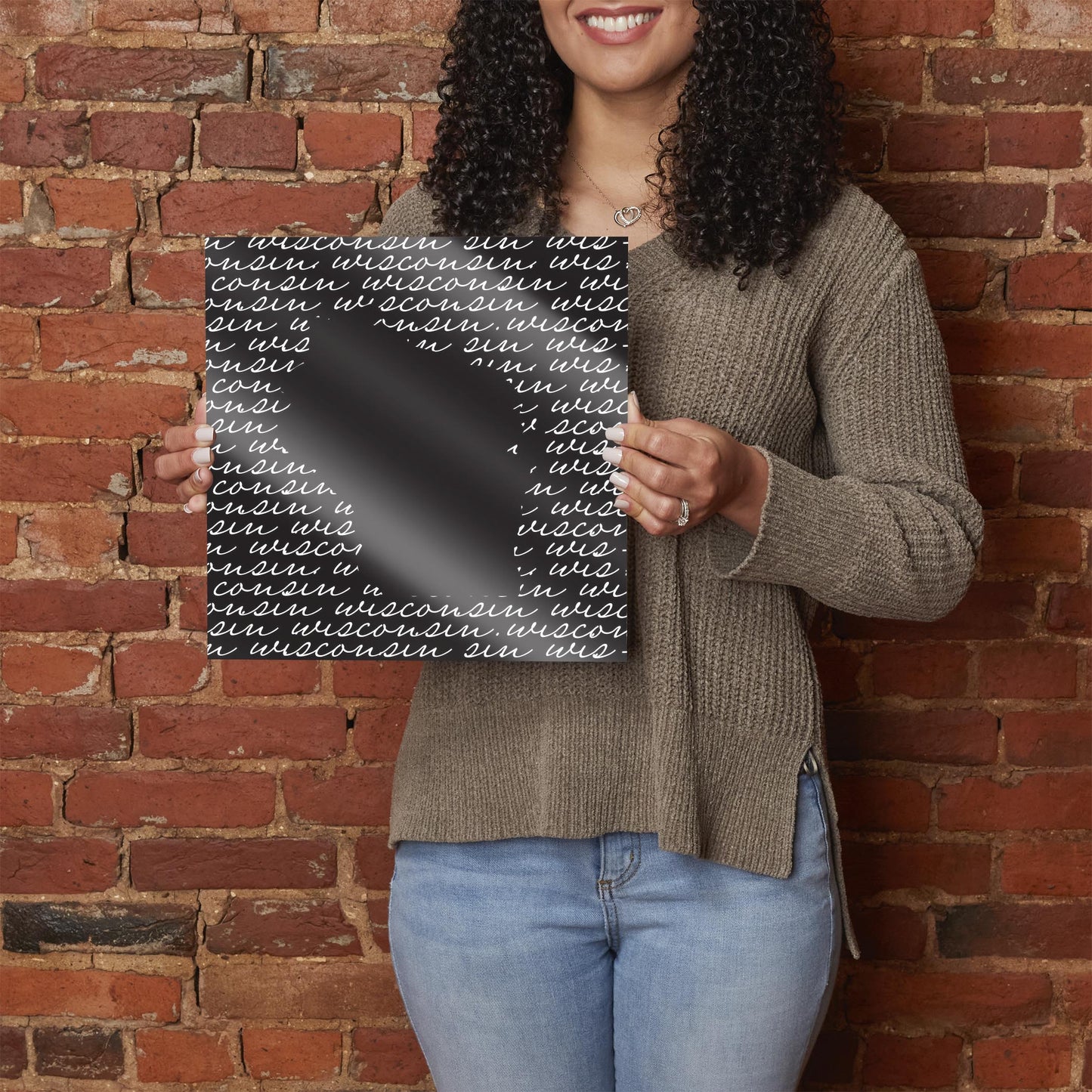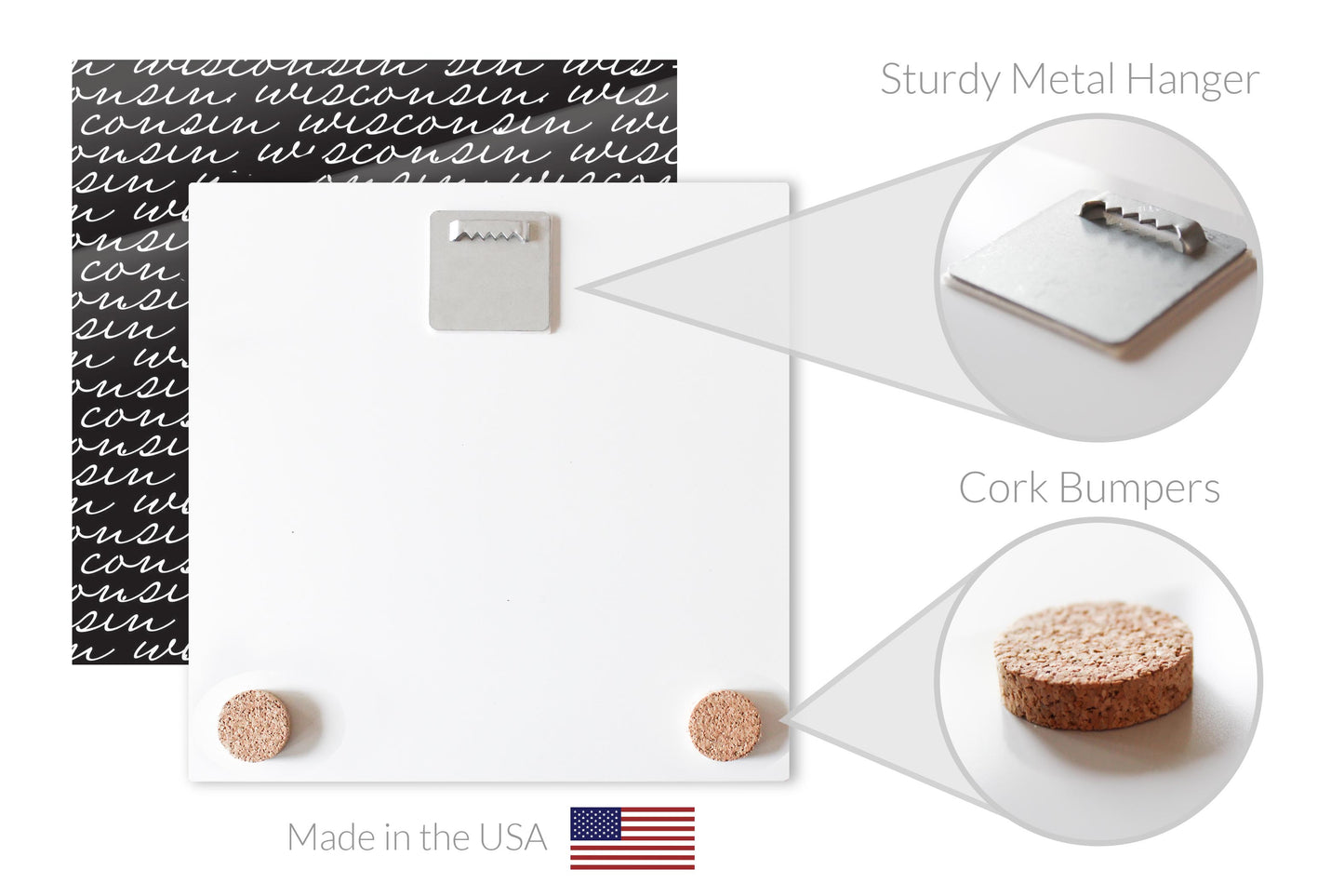 Black And White State Script Wisconsin | Hi-Def Glass Art | Eaches | Min 1