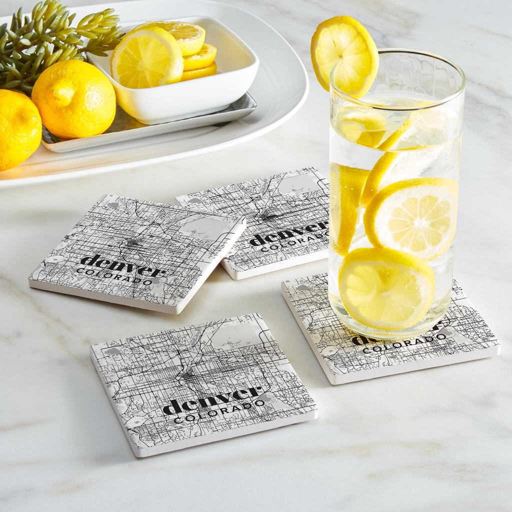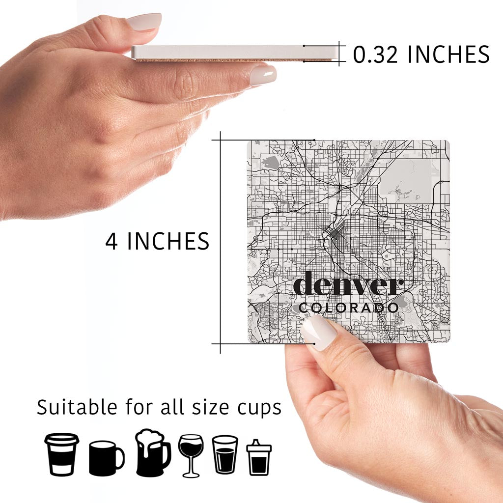 Black And White White Map Colorado Denver| Absorbent Coasters | Set of 4 | Min 2
