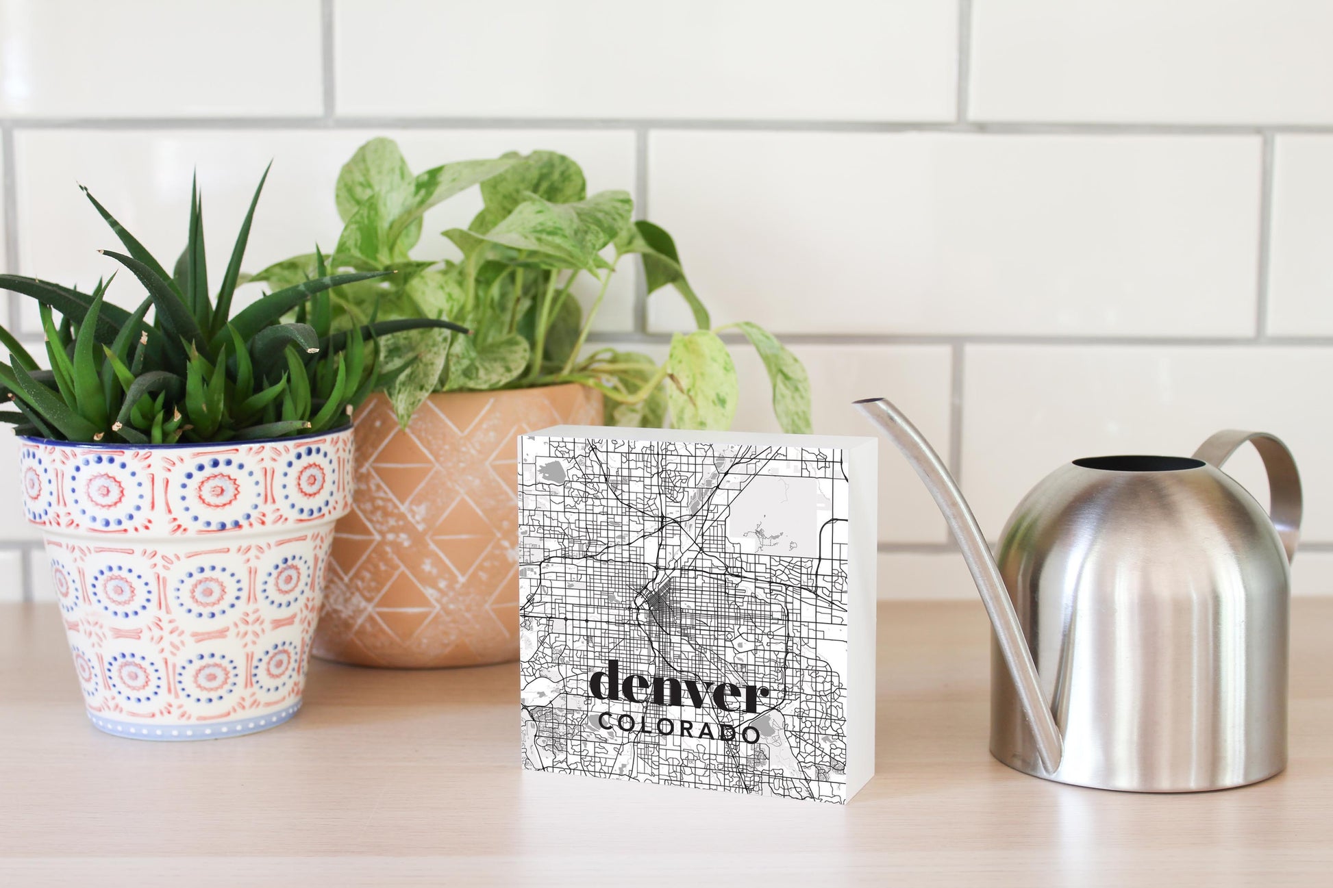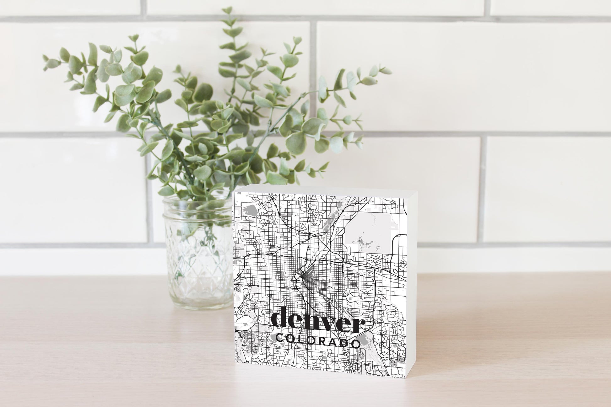 Black And White White Map Colorado Denver | Wood Block | Eaches | Min 4