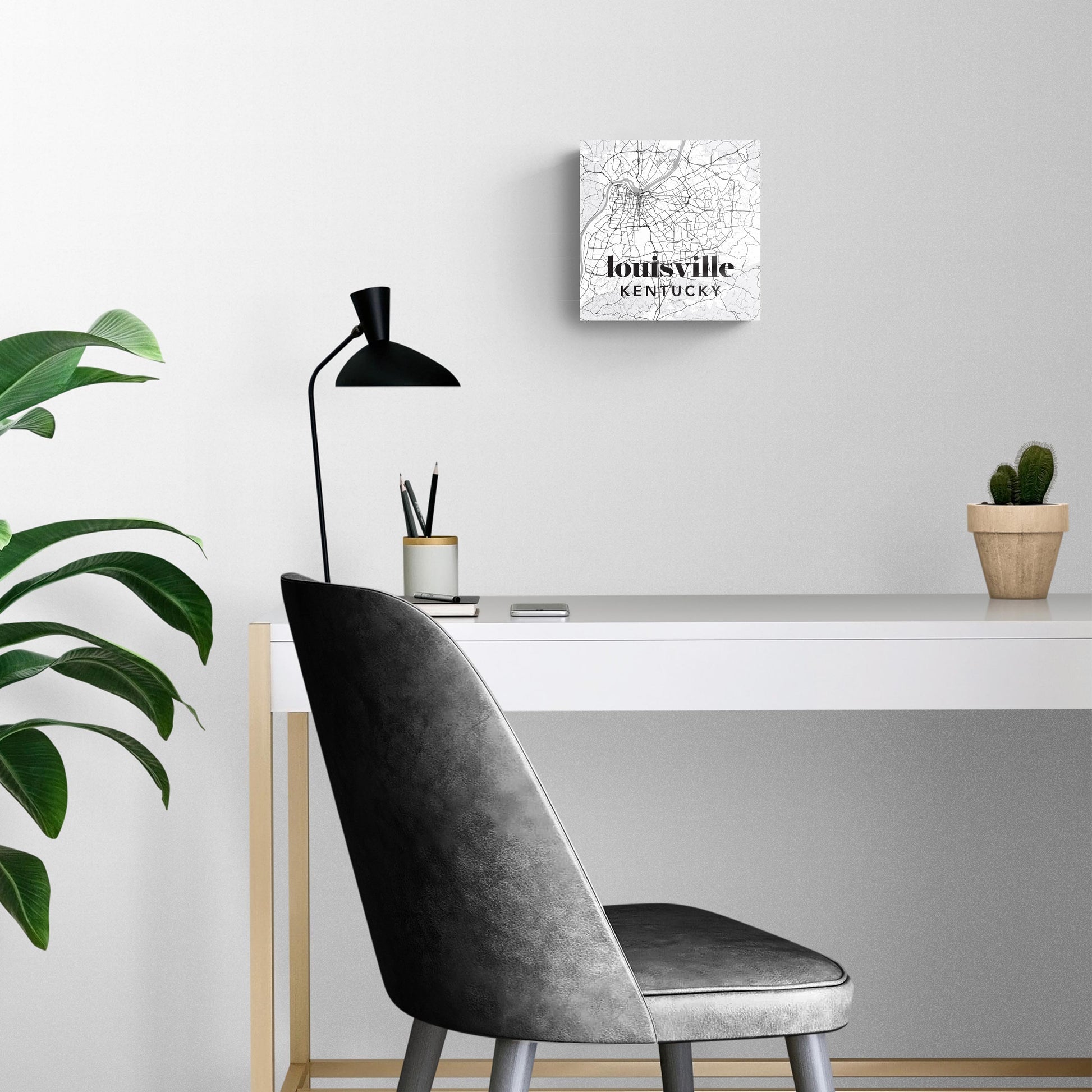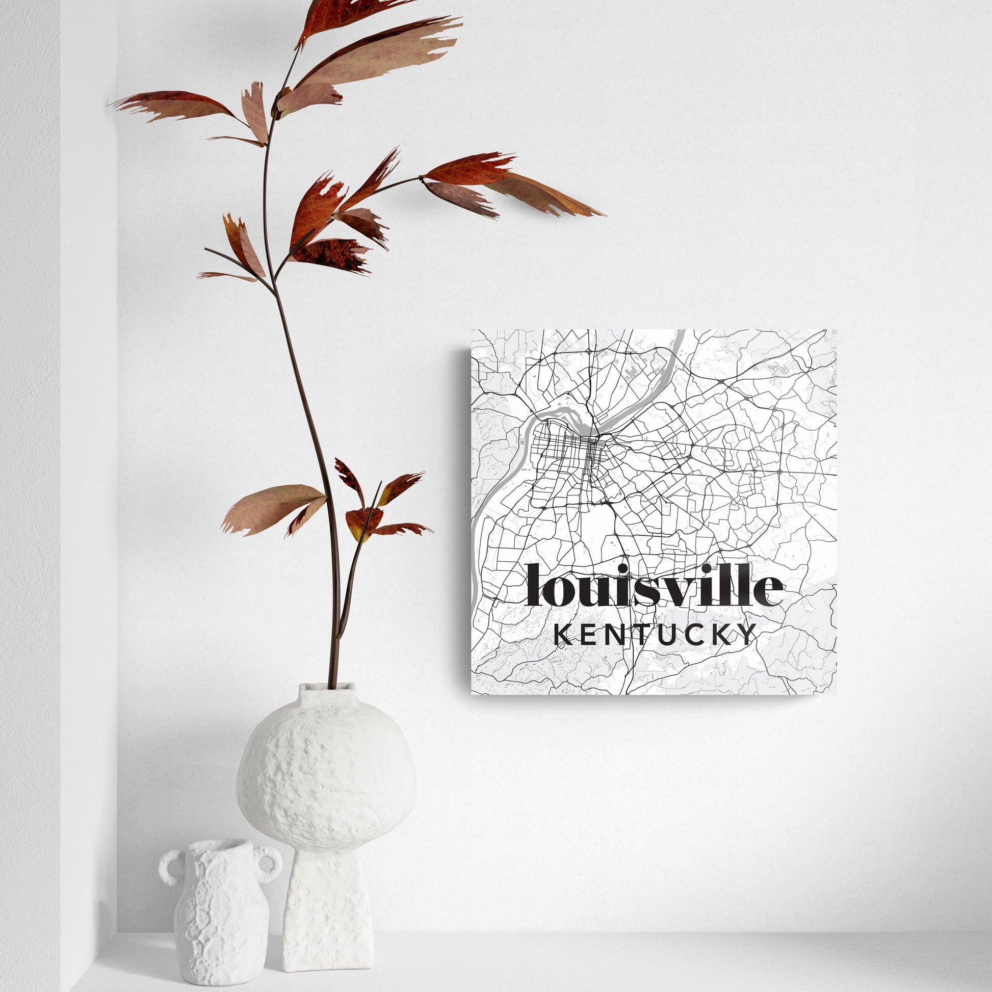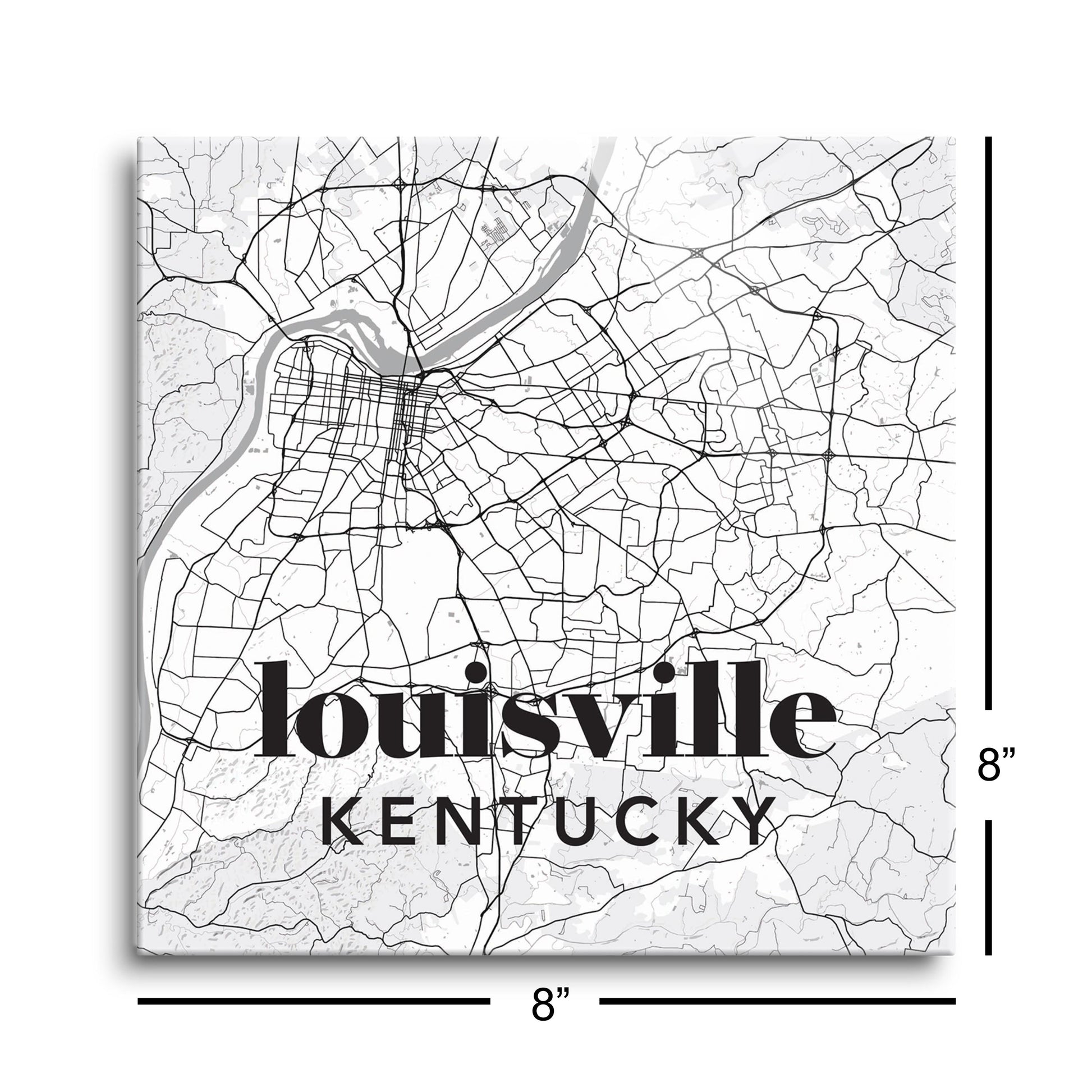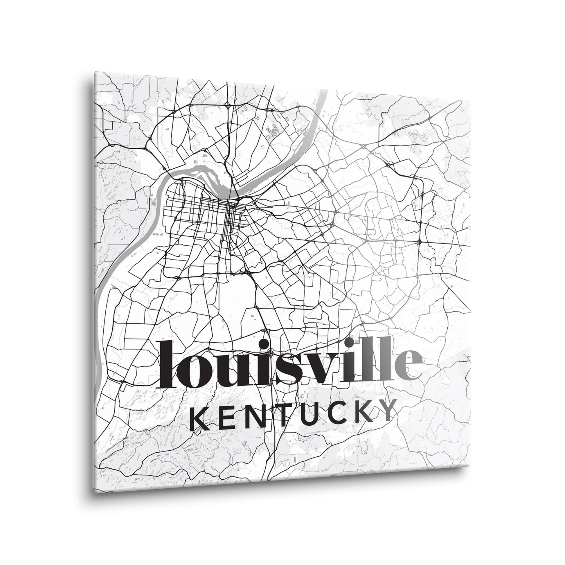 Black And White White Map Kentucky Louisville| Hi-Def Glass Art | Eaches | Min 2