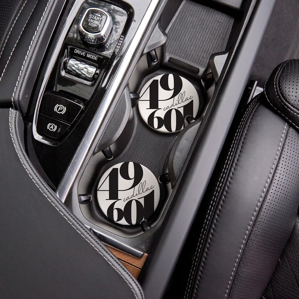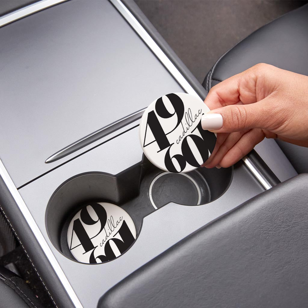 Black And White Zip Block Michigan Cadillac | Absorbent Car Coasters | Set of 2 | Min 4