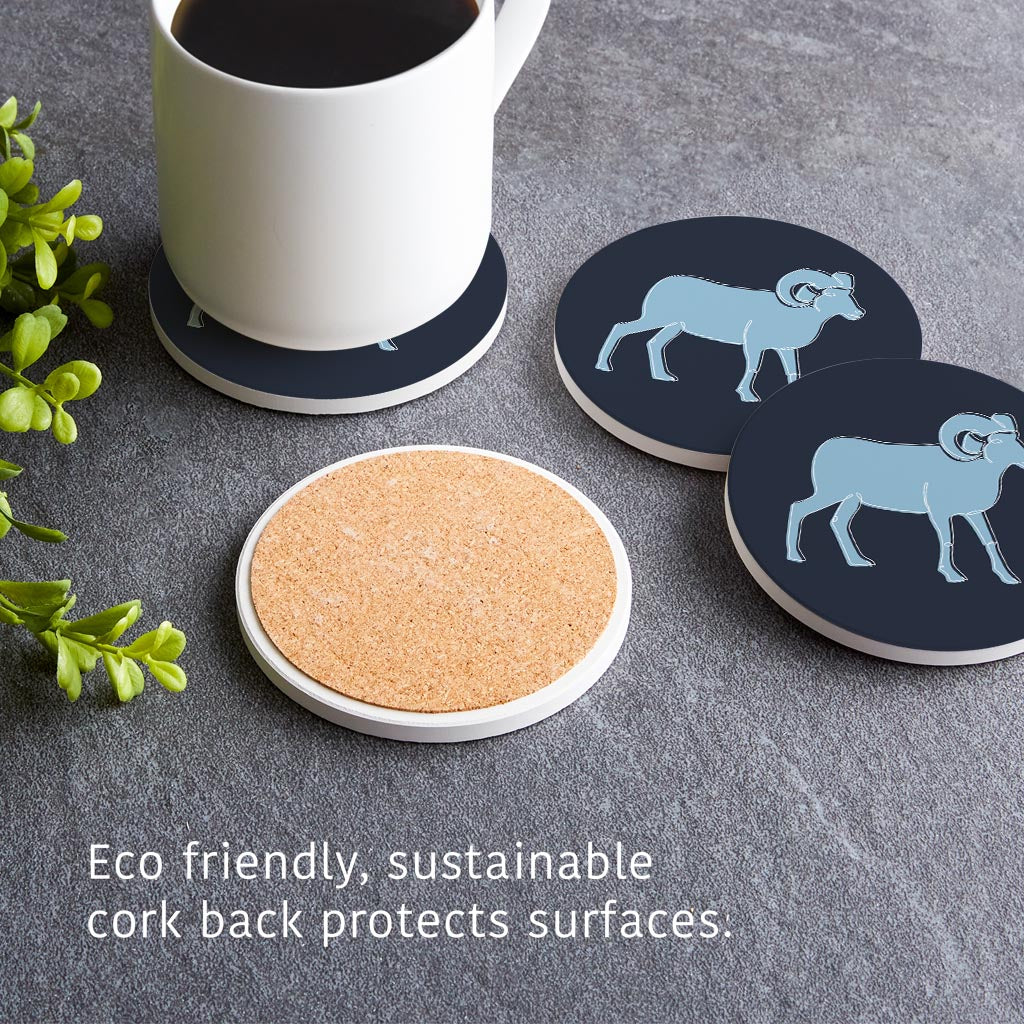 Blue Shades North Carolina Ram Line Drawing | Absorbent Coasters | Set of 4 | Min 2