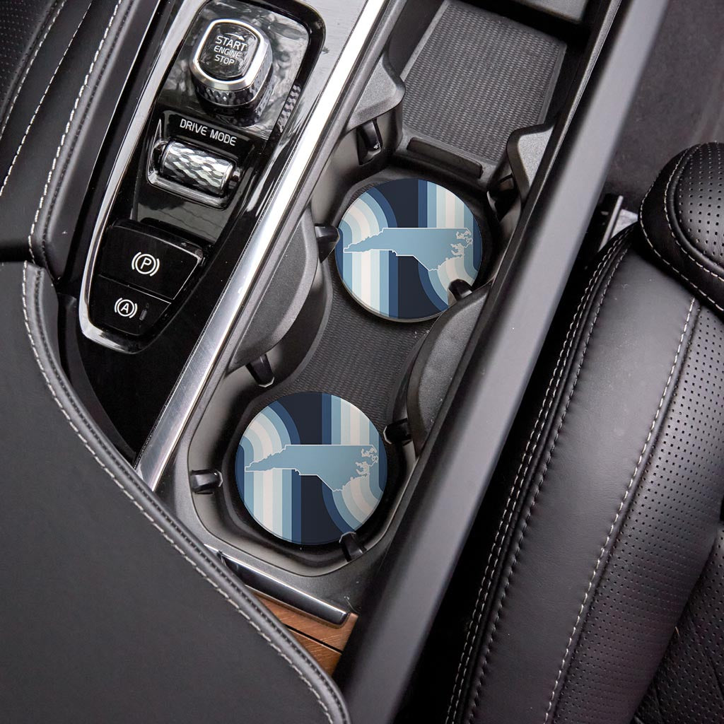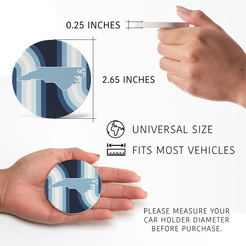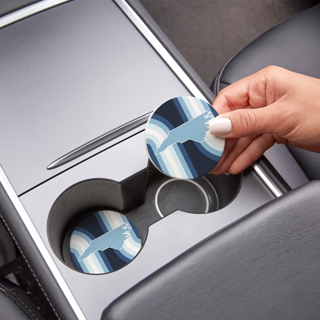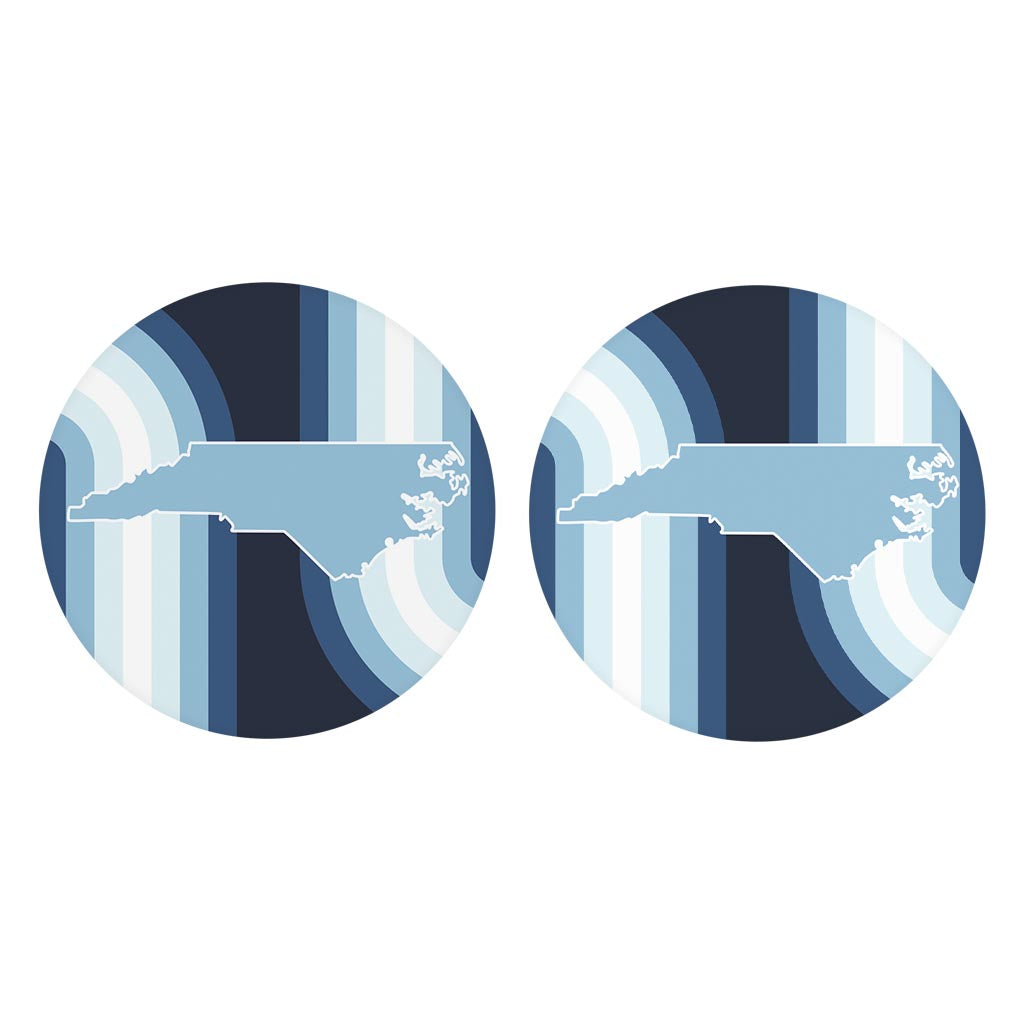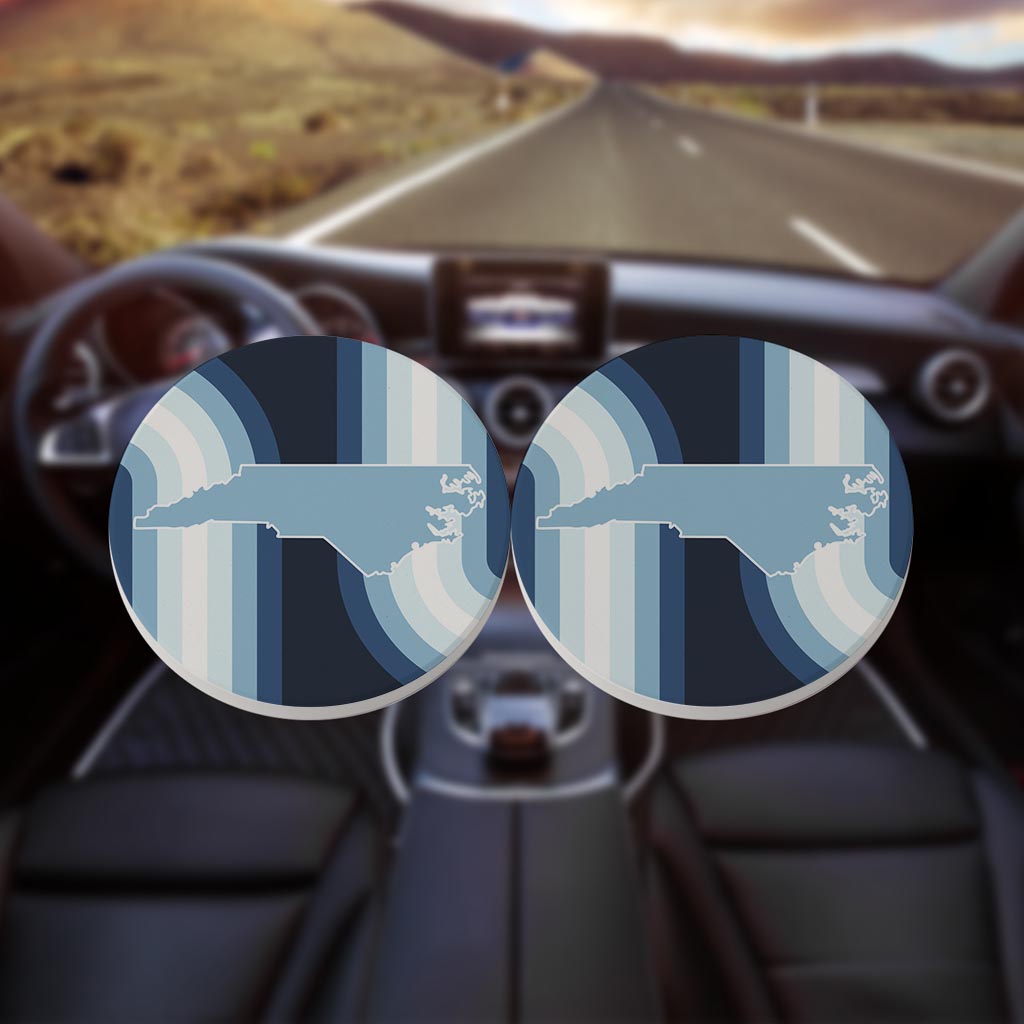 Blue Shades North Carolina State Retro Thick Lines | Absorbent Car Coasters | Set of 2 | Min 4