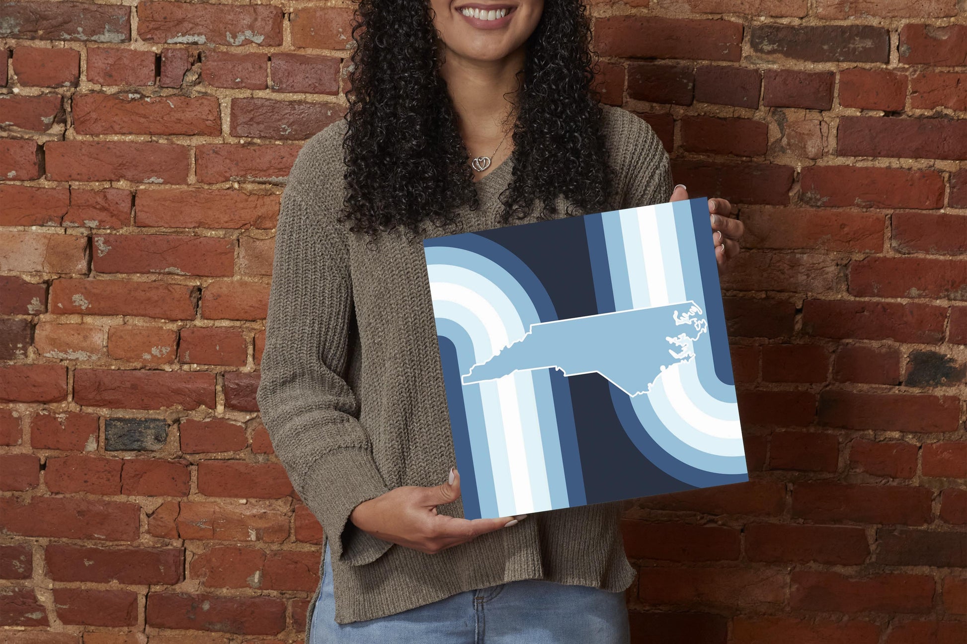 Blue Shades North Carolina State Retro Thick Lines | Wood Sign | Eaches | Min 2