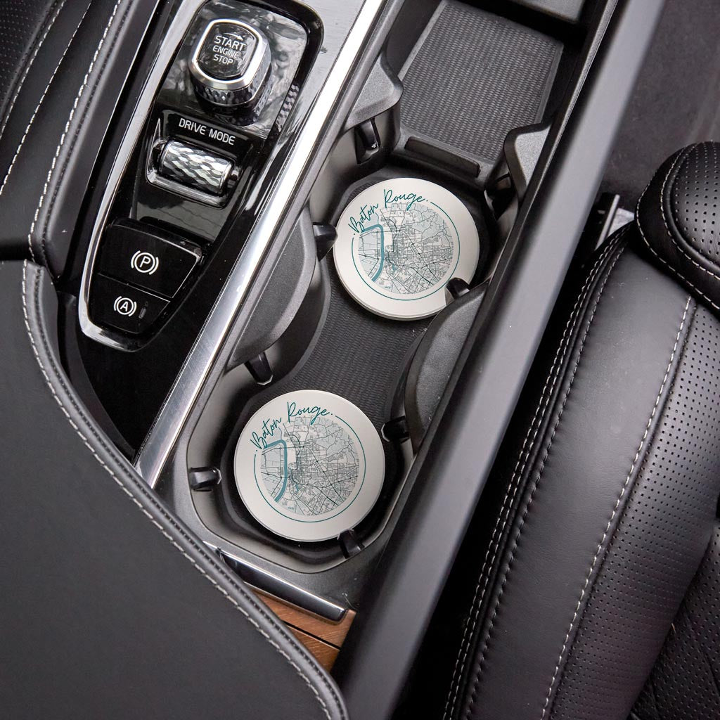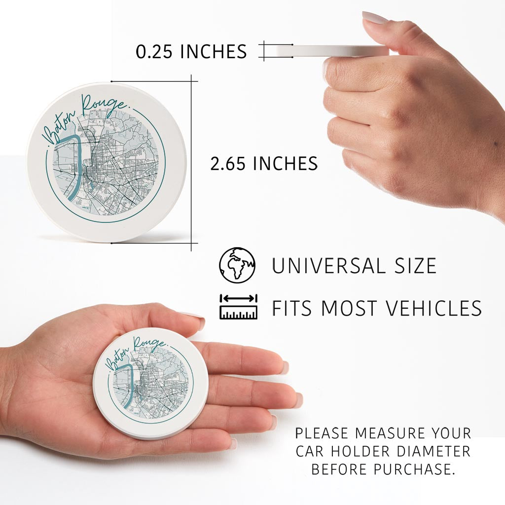 Blue White Baton Rouge Circle Map| Absorbent Car Coasters | Set of 2 | Min 4