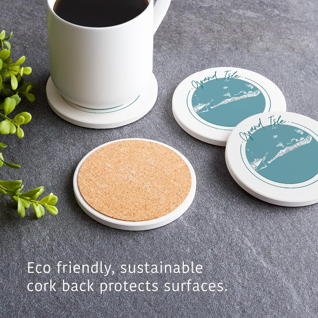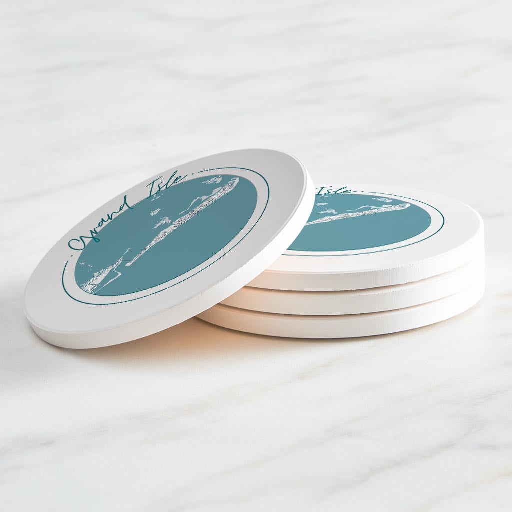Blue White Grand Isle Circle Map| Absorbent Coasters | Set of 4 | Min 2