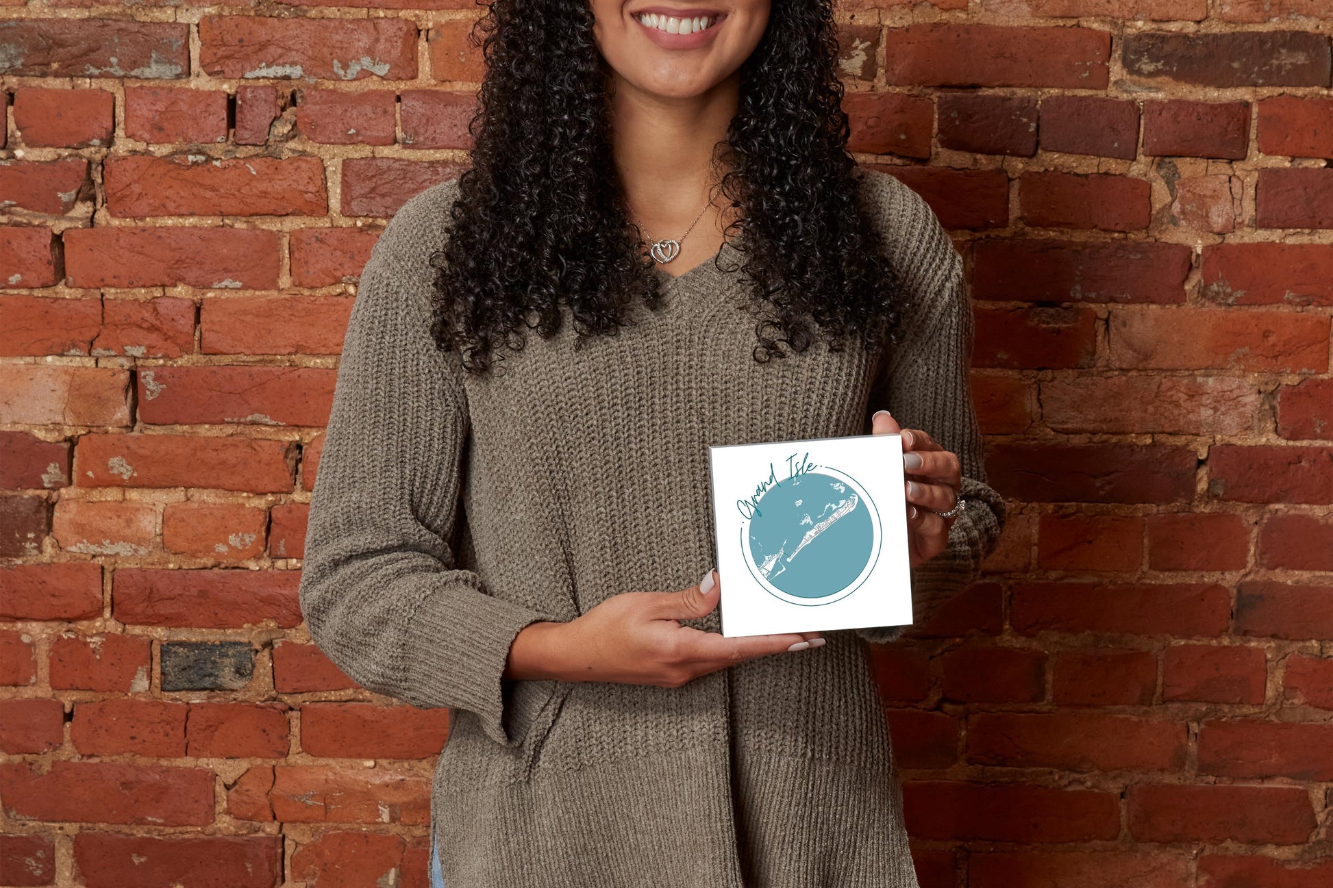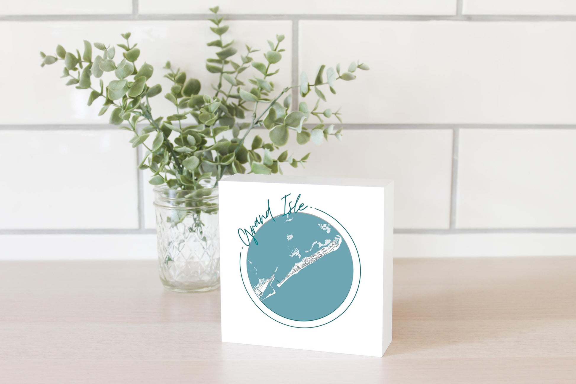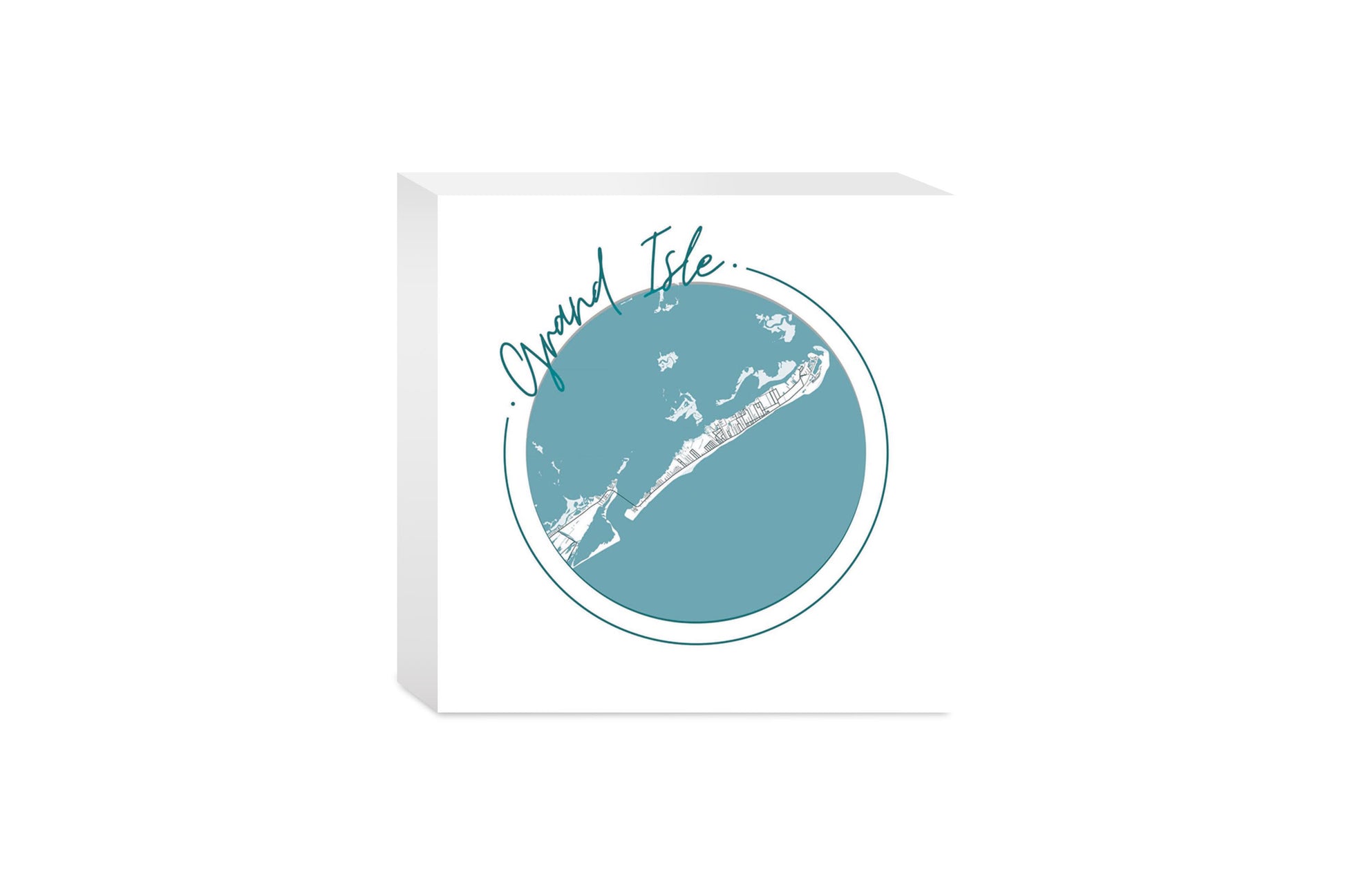 Blue White Grand Isle Circle Map | Wood Block | Eaches | Min 4