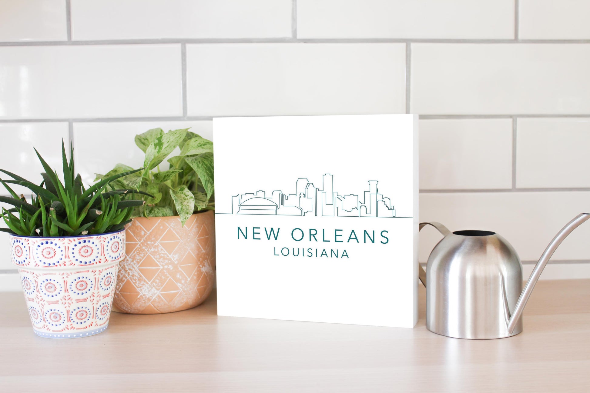 Blue White New Orleans Skyline | Wood Block | Eaches | Min 2