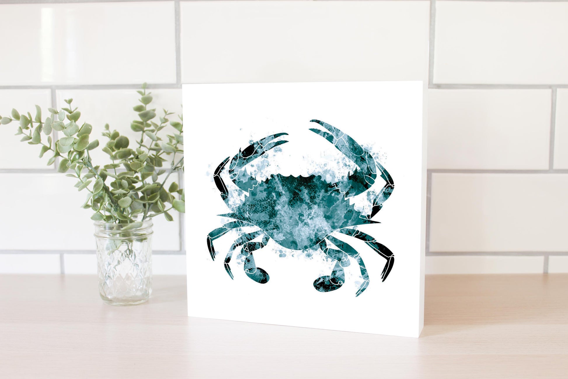 Blue White Water Color Blue Crab | Wood Block | Eaches | Min 2
