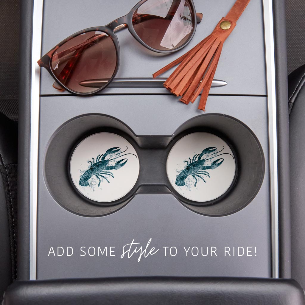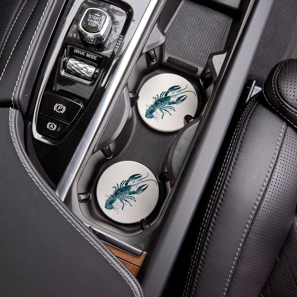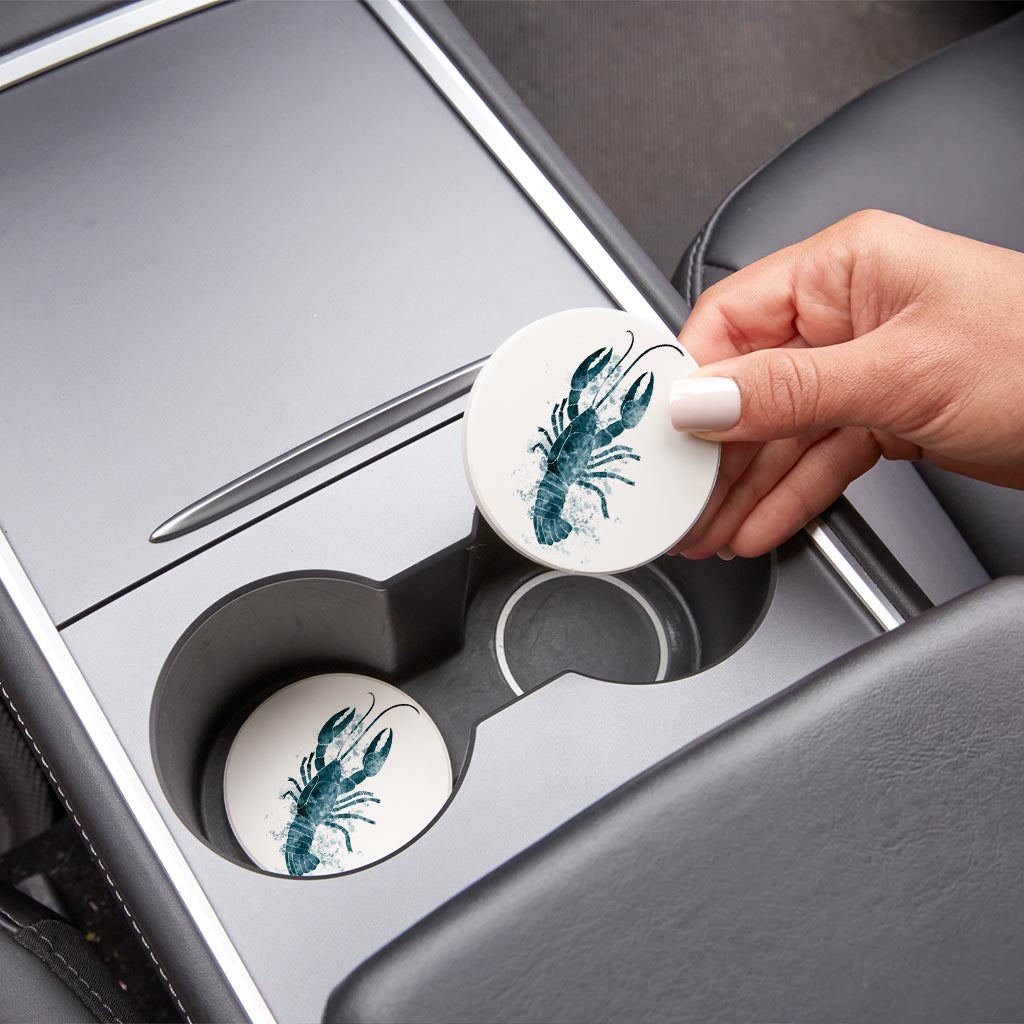 Blue White Water Color Crawfish | Absorbent Car Coasters | Set of 2 | Min 4