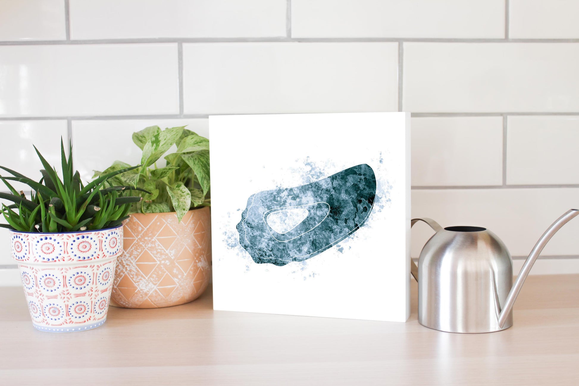 Blue White Water Color Oyster | Wood Block | Eaches | Min 2