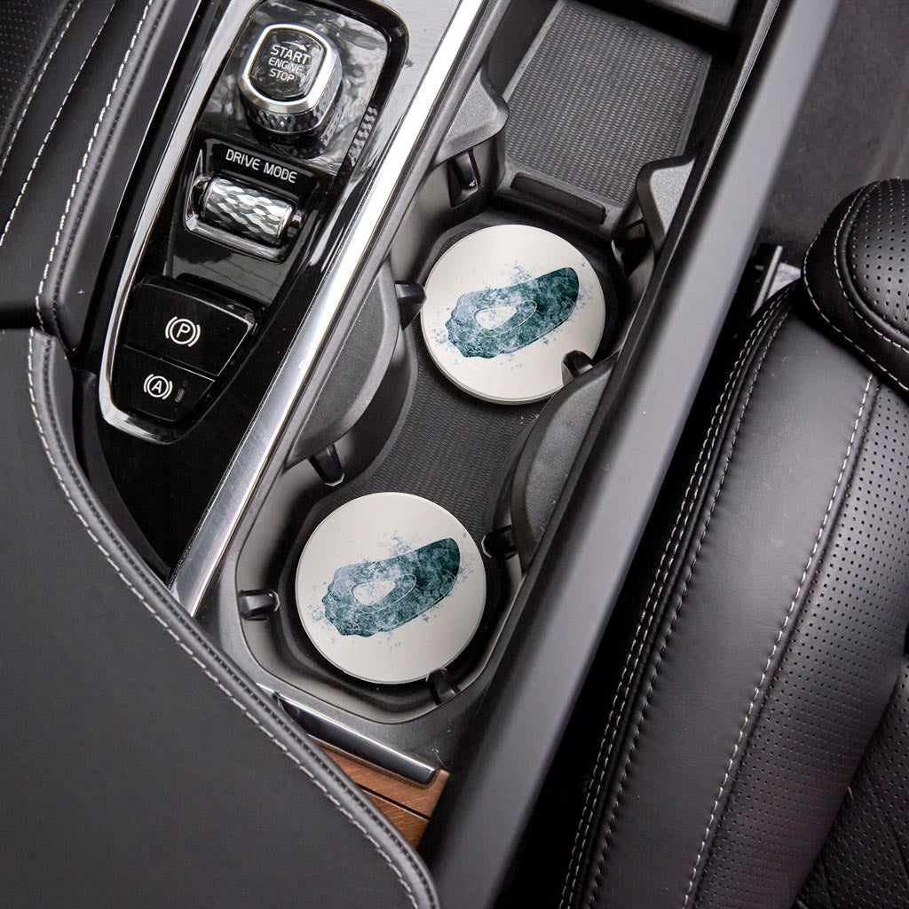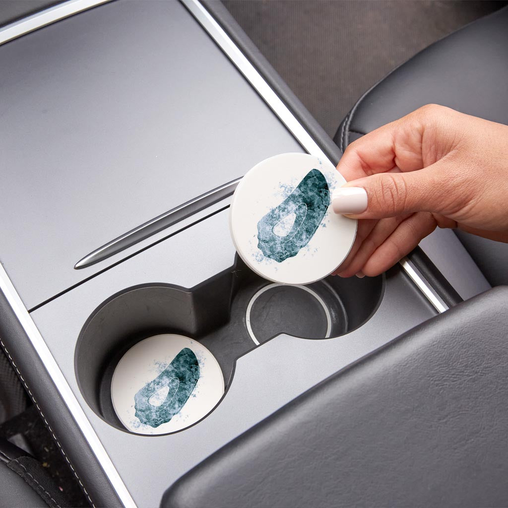 Blue White Water Color Oyster | Absorbent Car Coasters | Set of 2 | Min 4