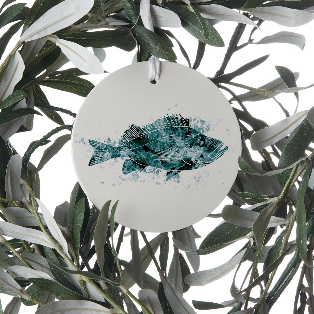 Blue White Water Color Red Fish | Wood Ornament | Eaches | Min 6