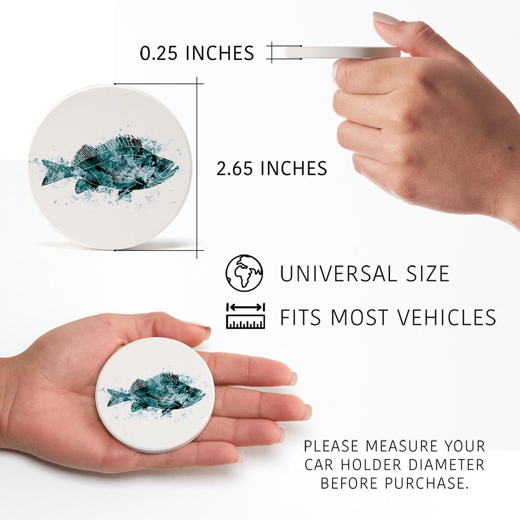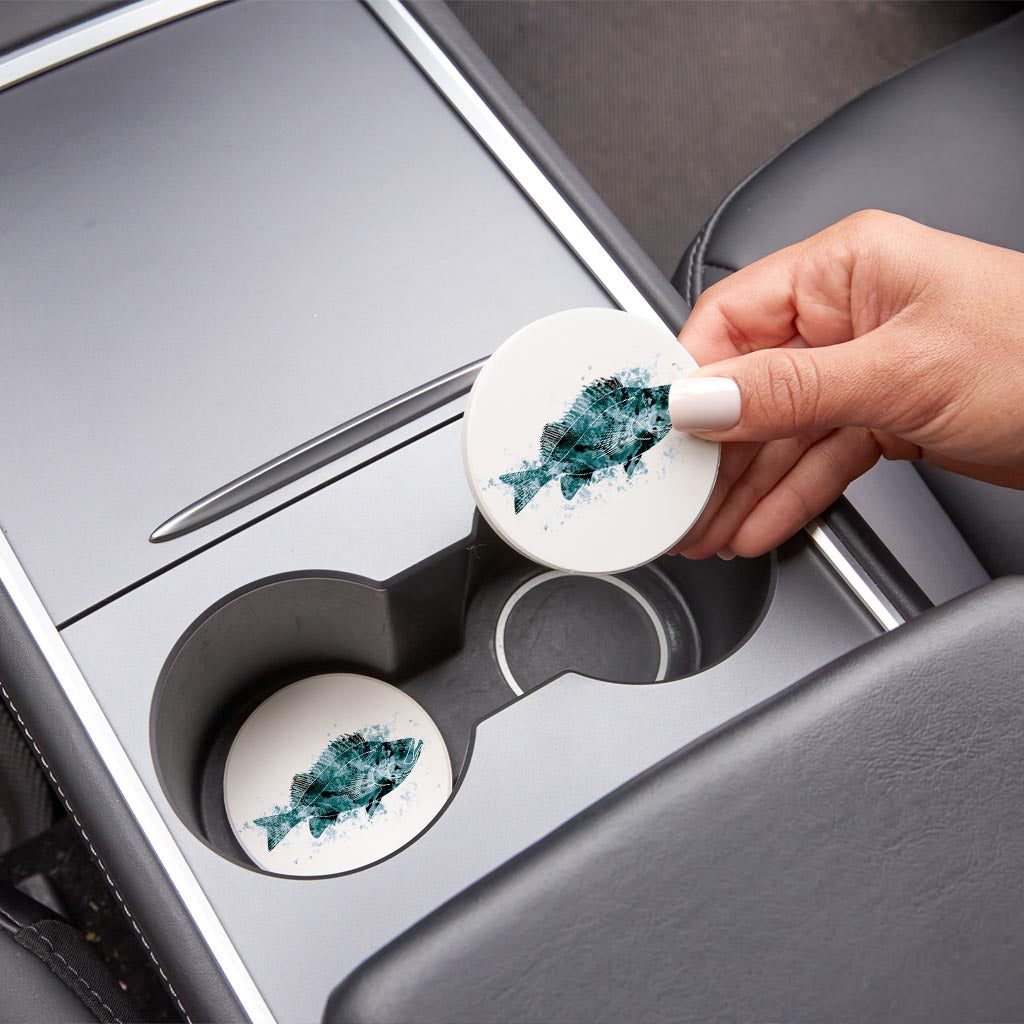 Blue White Water Color Red Fish | Absorbent Car Coasters | Set of 2 | Min 4
