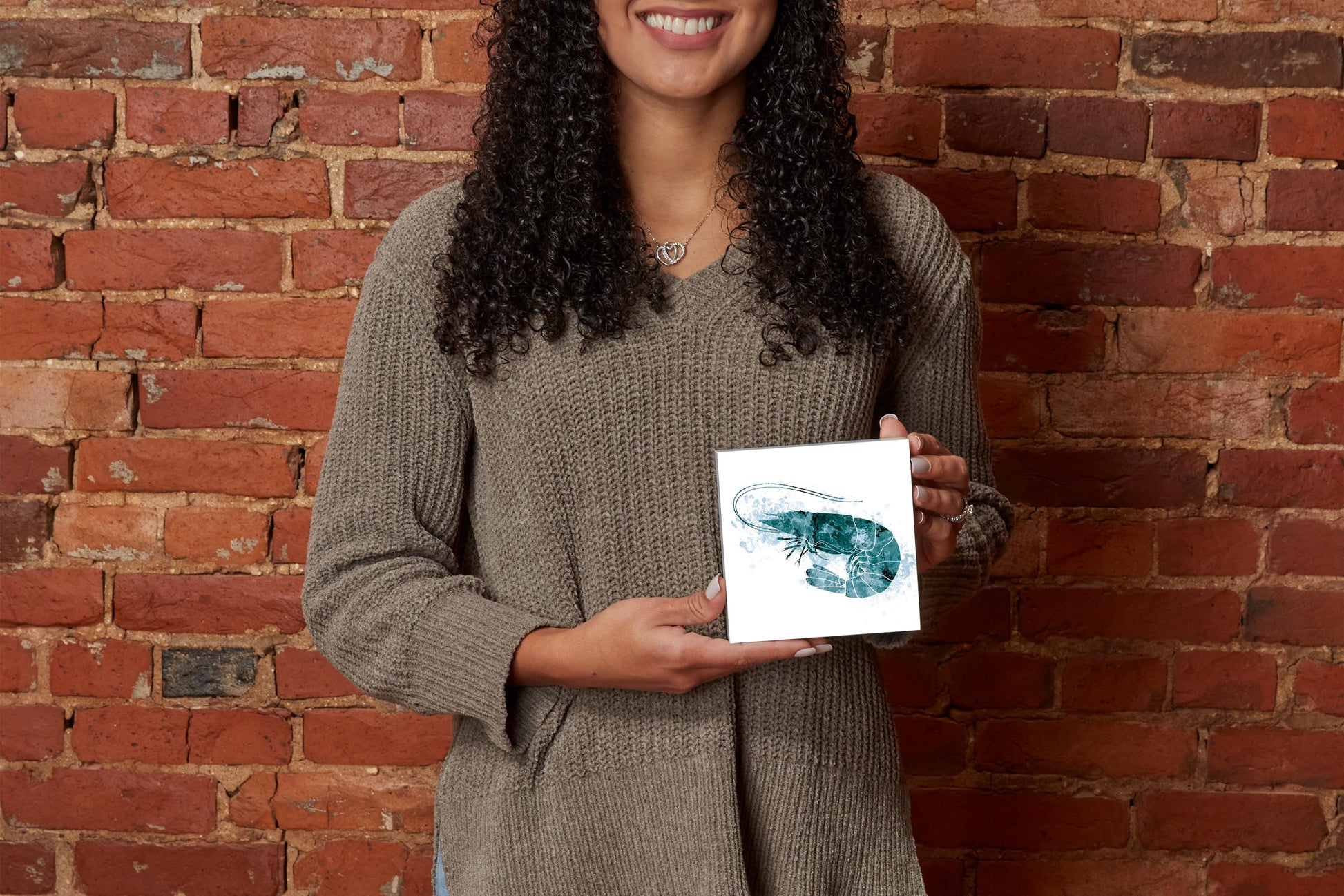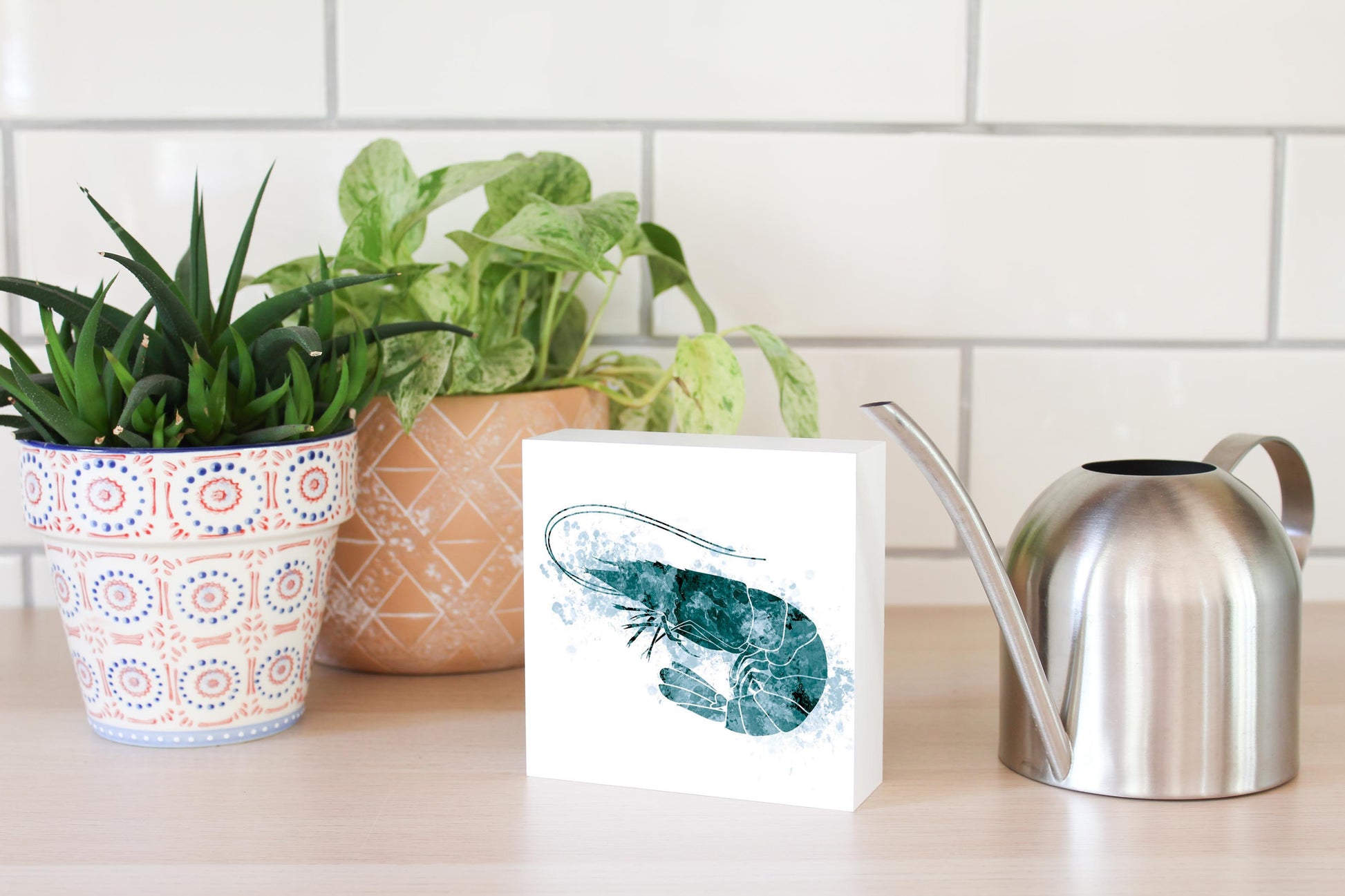 Blue White Water Color Shrimp | Wood Block | Eaches | Min 4