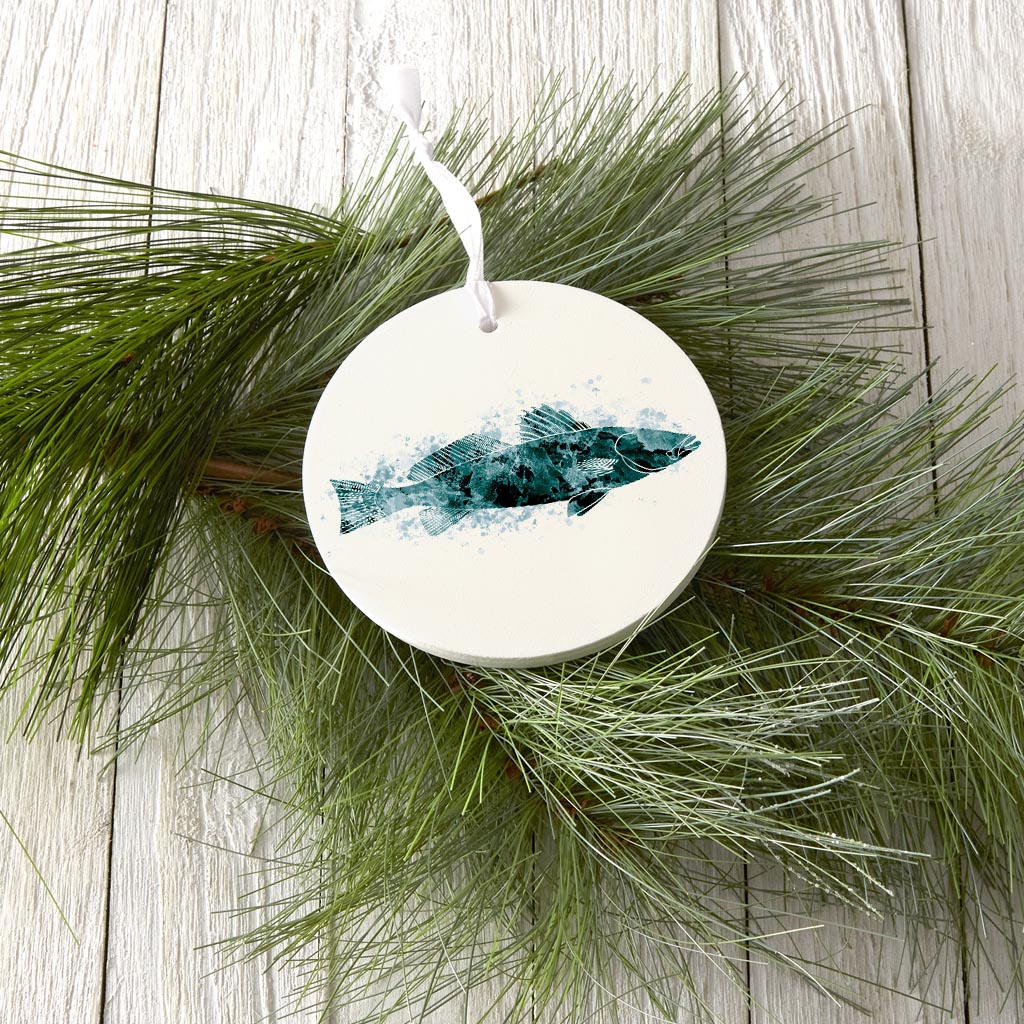 Blue White Water Color Speckled Trout | Wood Ornament | Eaches | Min 6