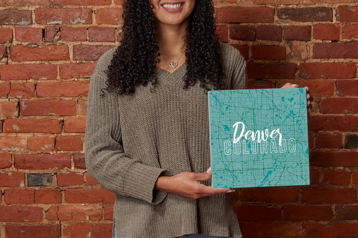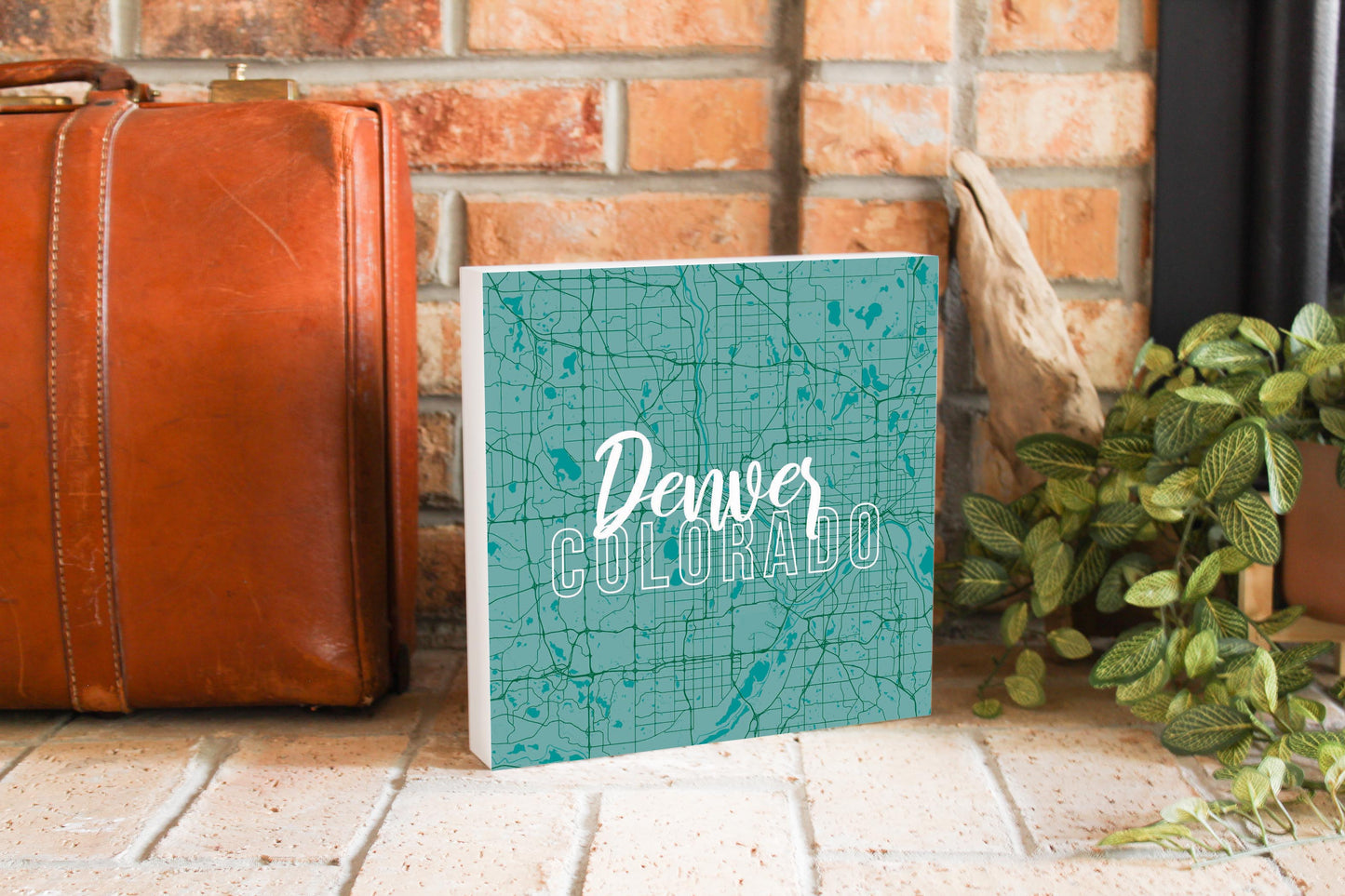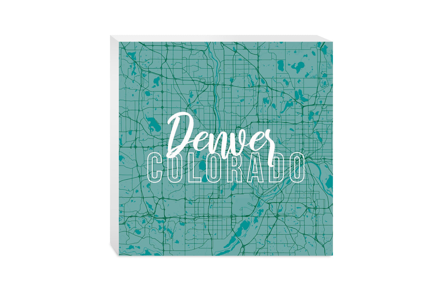 Boho Color Blue Map Colorado Denver | Wood Block | Eaches | Min 2