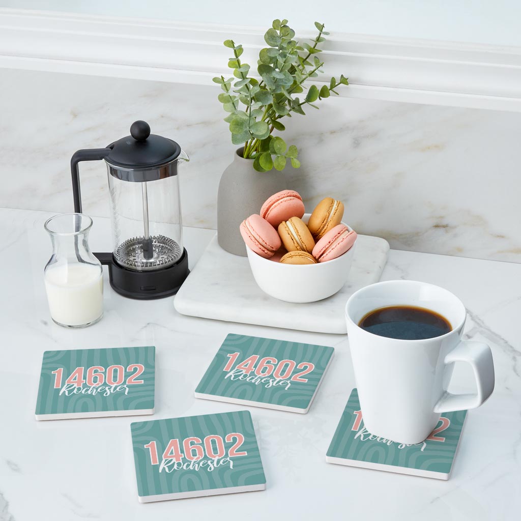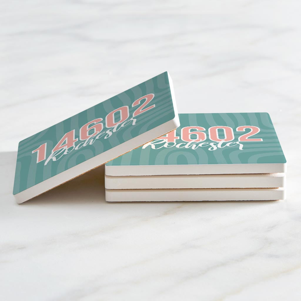 Boho Color City Zip On Blue New York Rochester | Absorbent Coasters | Set of 4 | Min 2